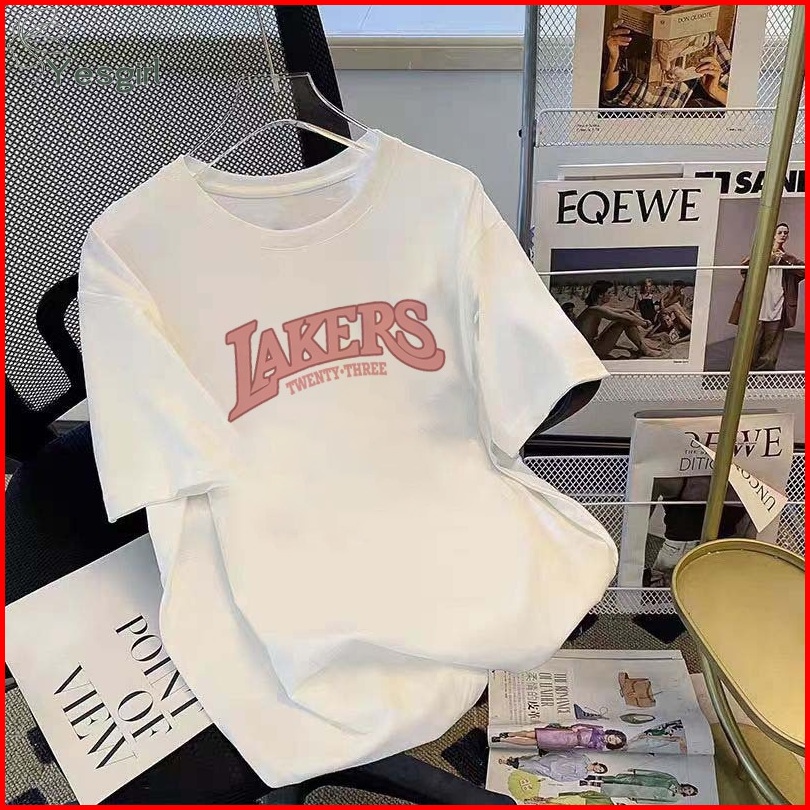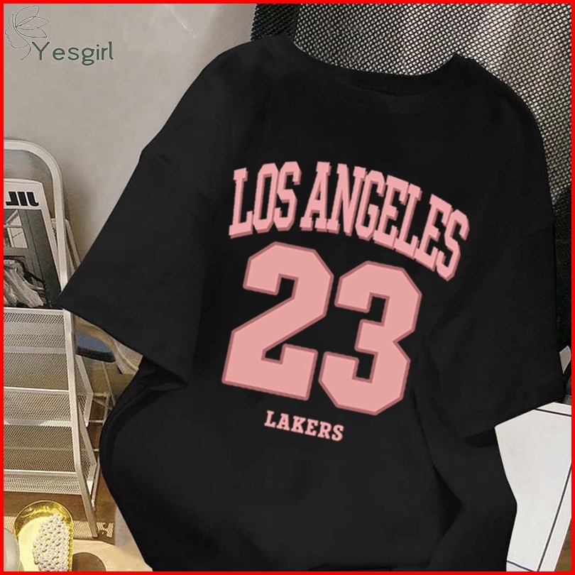 Yesgirl Korea Style Pink Lakers 23 Print Kaos Kasual Longgar Kaos Oversize Wanita Fashion Korean Style Baju Kaos Oversiz