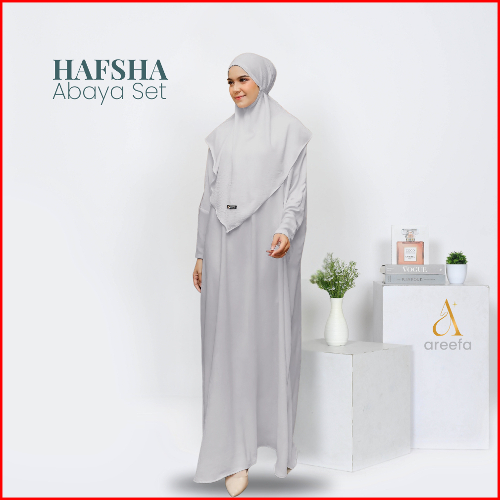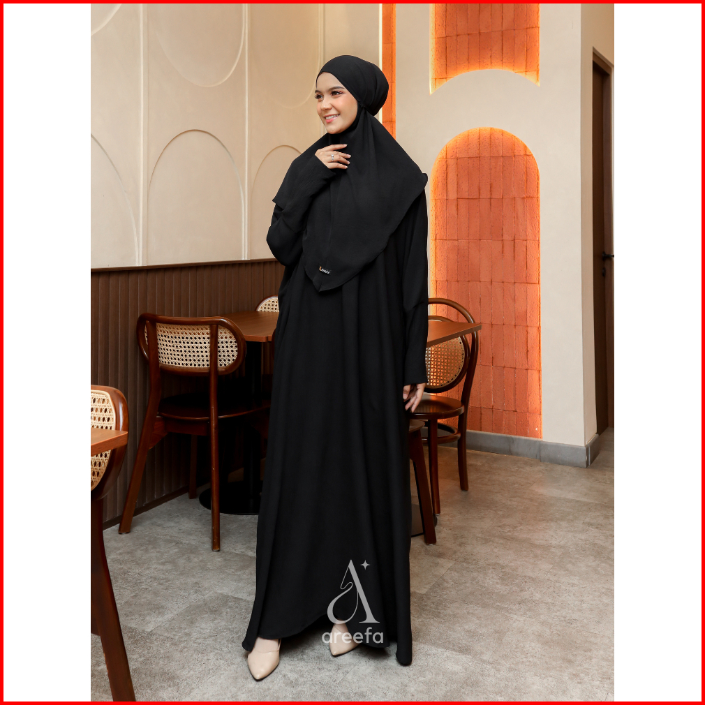 Areefa - Abaya Gamis Set Hijab Kerudung Umroh Haji Syari Polos Jumbo Premium Mewah Elegan Terbaru