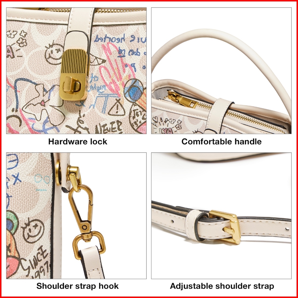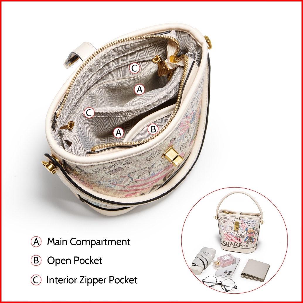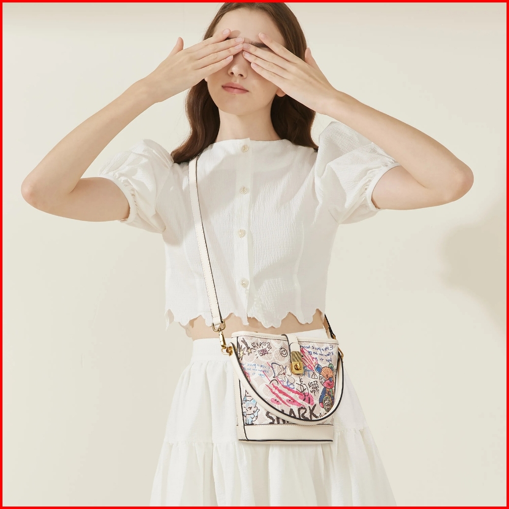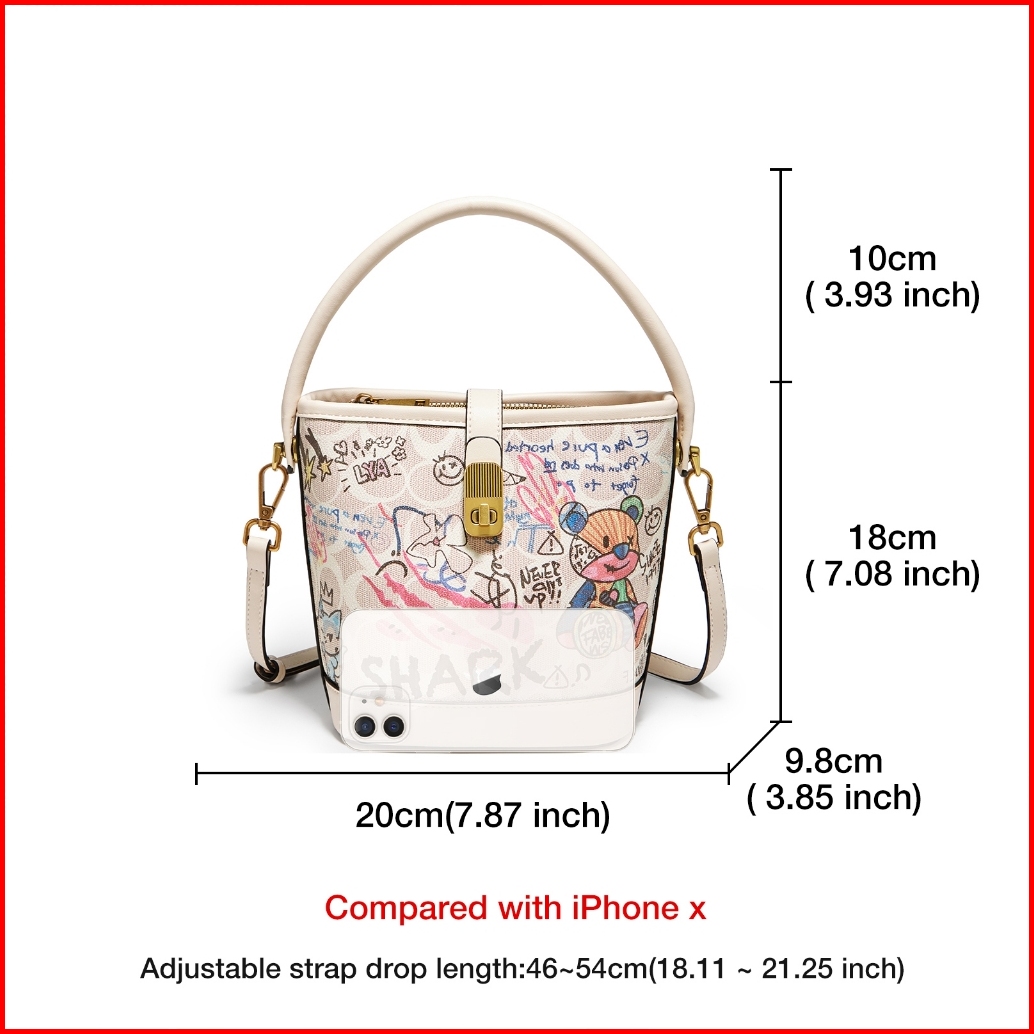Foxer Tas Bahu Wanita Tas Bucket Grafiti Tas Tangan Fashion Tas Wanita Bermotif Tas Kulit