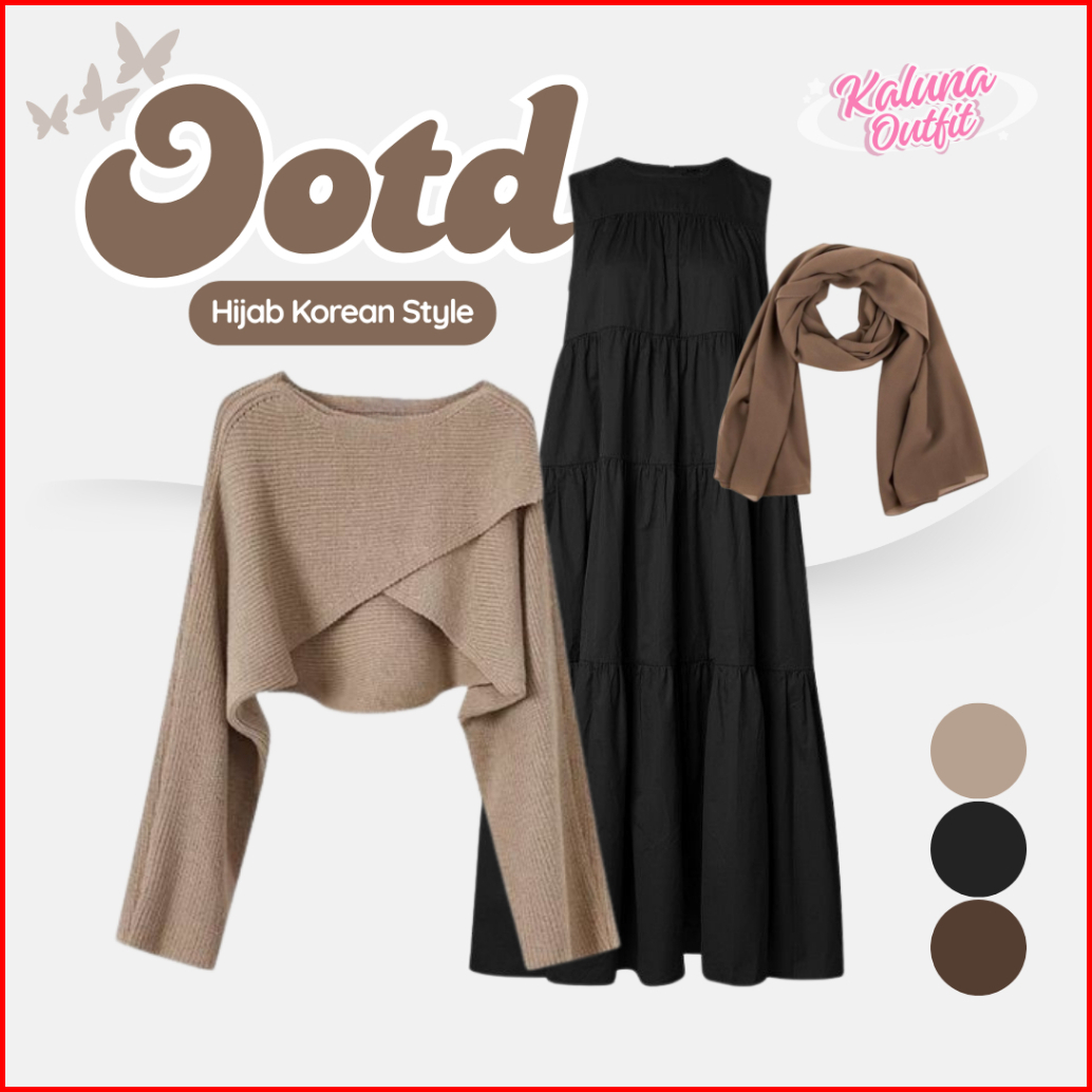 3in1 Set Wanita Kekinian Sweater Dress Pashmina Setelan Hijab Remaja Korean Style Ko2g