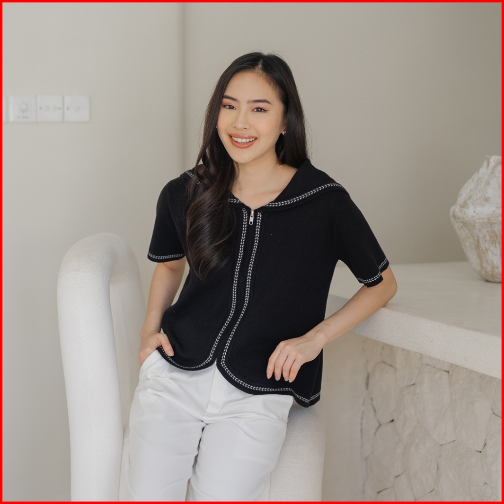 Beatrice Clothing Orla Knit Blouse - Atasan Zipper Sailor