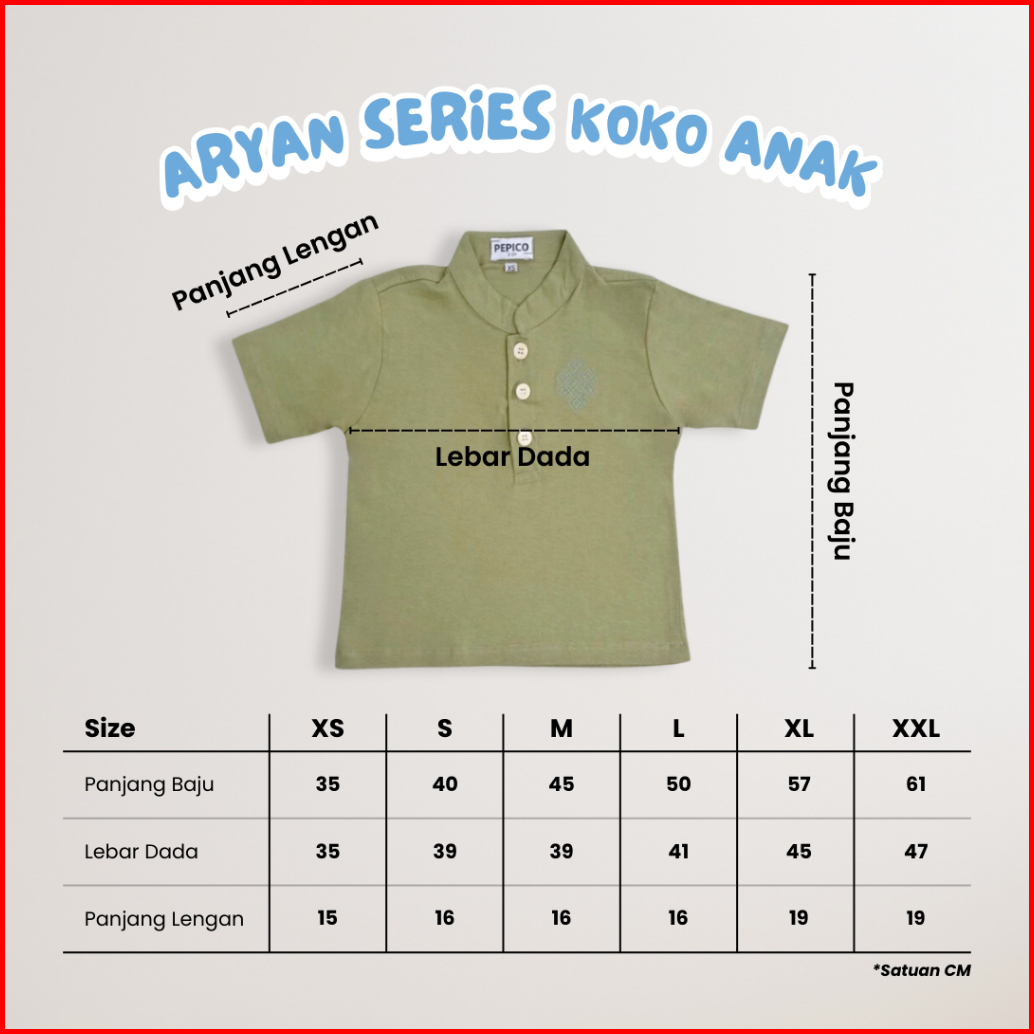 Pepico Baju Koko Anak Lengan Pendek Katun Aryan Series