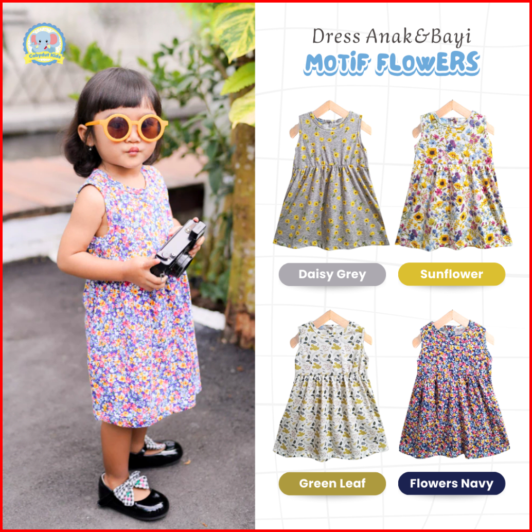 Cabydut Dress Anak Dan Bayi Perempuan Katun Motif Flowers