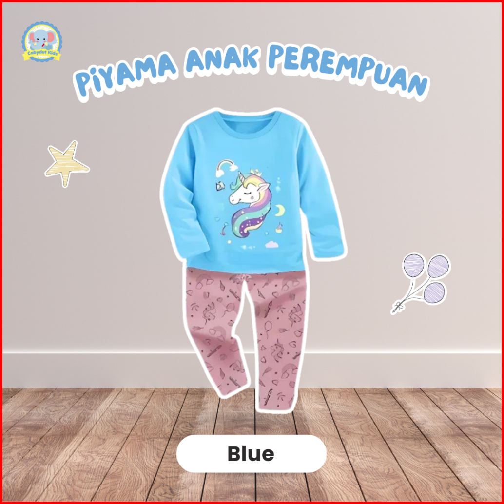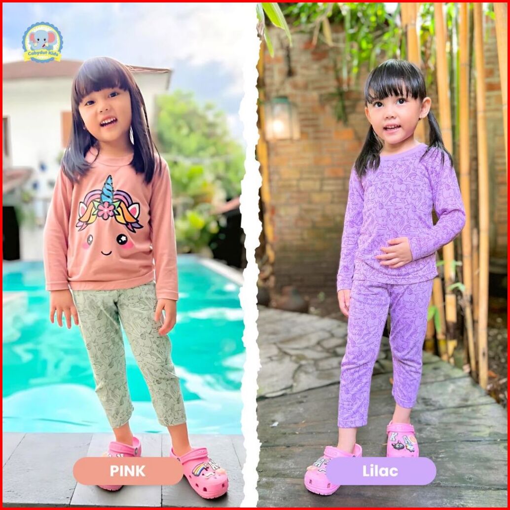 Cabydut Baju Tidur Anak Perempuan Piyama Lengan Panjang Cotton Bamboo Rainbow Unicorn