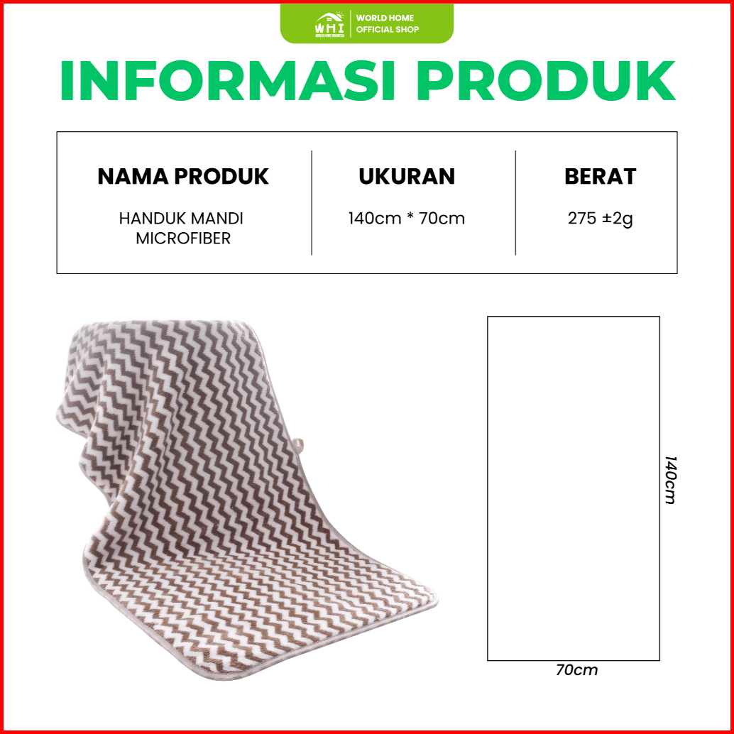 World Home Handuk Mandi Microfiber 5 Pcs Handuk Dewasa Menyerap Air Warna Random 135 X 70cm