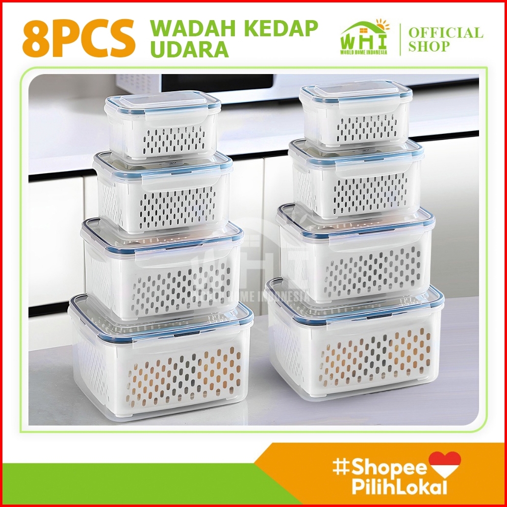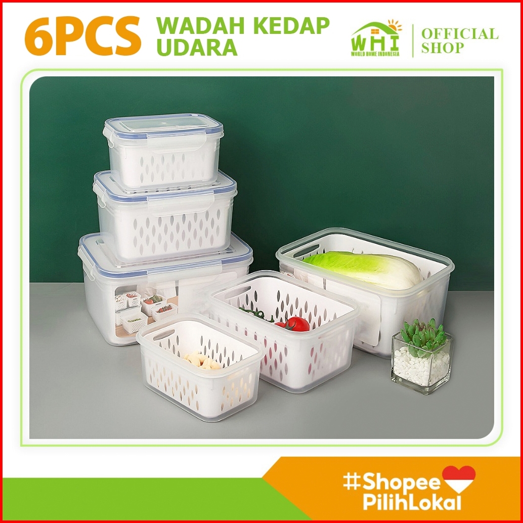 World Home Kotak Plastik Kedap Udara 6 Pcs 8 Pcs Kotak Makanan Buah Sayur Kotak Plastik Beranak