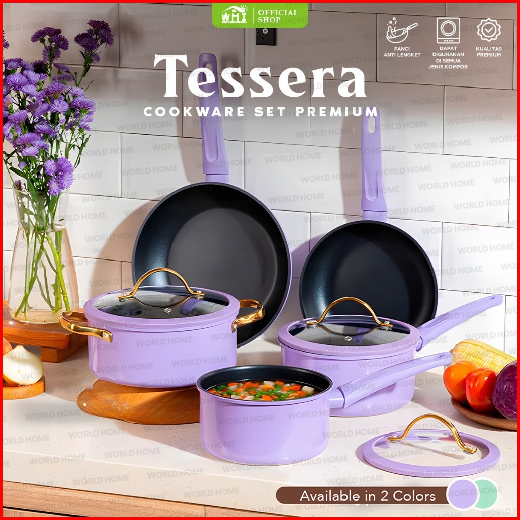 World Home Tessera Cookware Set Premium Series Purple Light Green Dengan Nonstick Coating Anti Lengket Mudah Dibersihkan