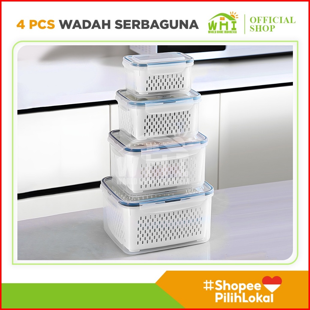 World Home Kotak Penyimpanan Makanan 4 In 1 Wadah Saringan Pengering Sayur Kontainer Tirisan Kotak