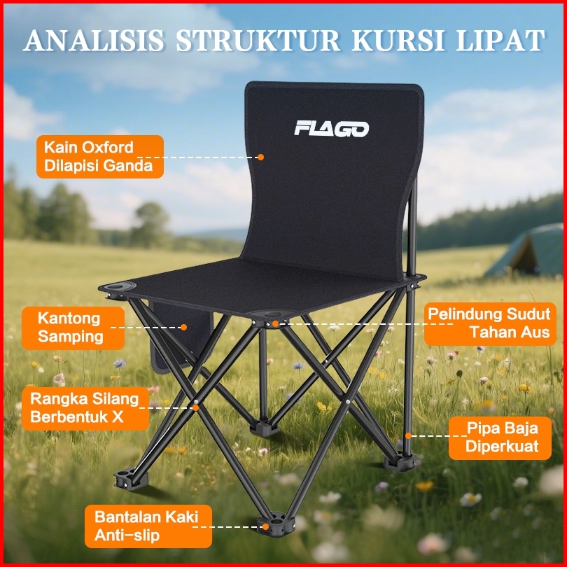 Flago Kursi Lipat Outdoor Serbaguna Kursi Lipat Camping Tebal Dan Tahan Aus Penahan Beban 200kg