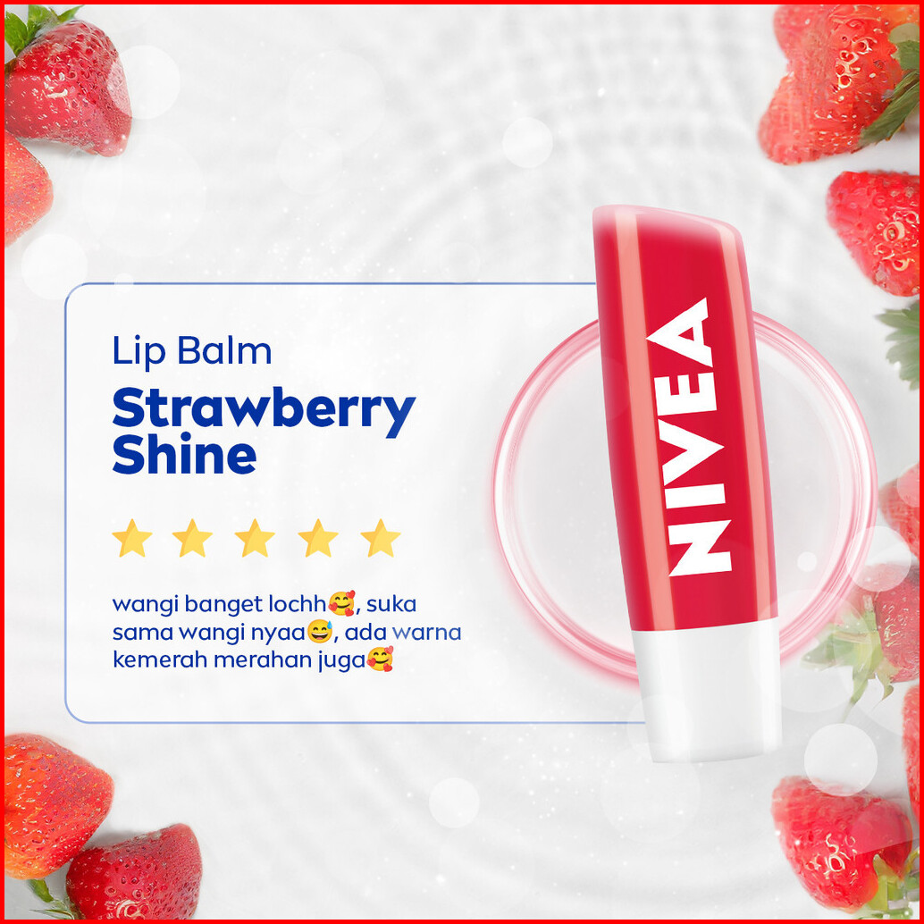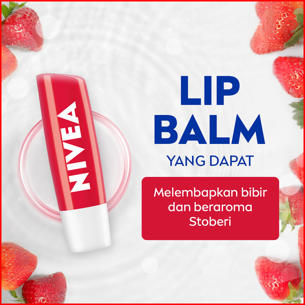 Nivea Lip Care Lip Balm 4.8gr X2 - Original Essential Strawberry Shine - Melembabkan Perawatan Intensif Pada Bibir
