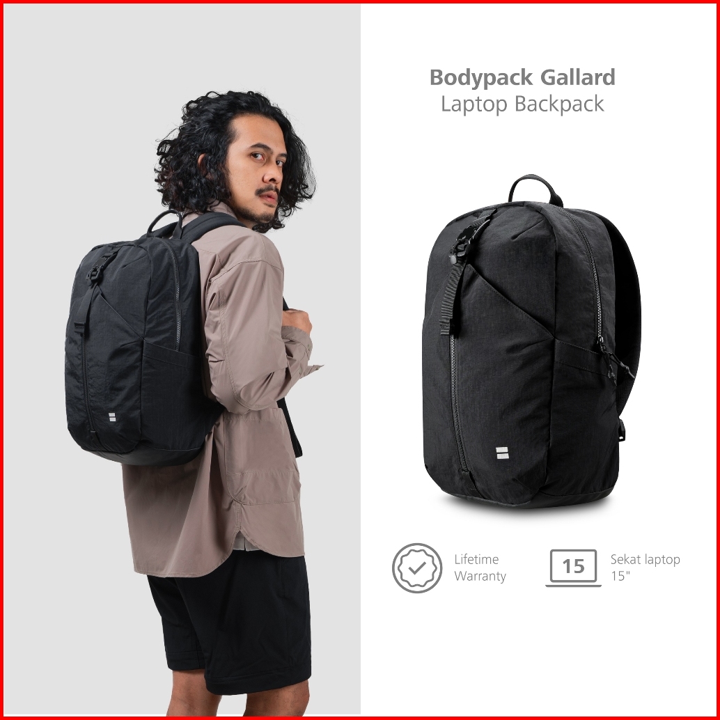 Bodypack Gallard Laptop Backpack 14 Inch Tas Ransel Kerja Kuliah Sekolah Ringan Multifungsi - Hitam