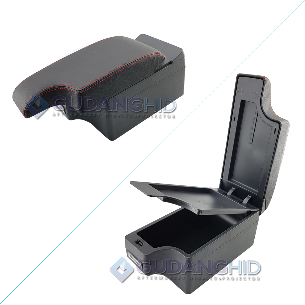 Armrest Kulit Mobil Khusus Toyota Agya Daihatsu Ayla 7 USB Port Charger + LED