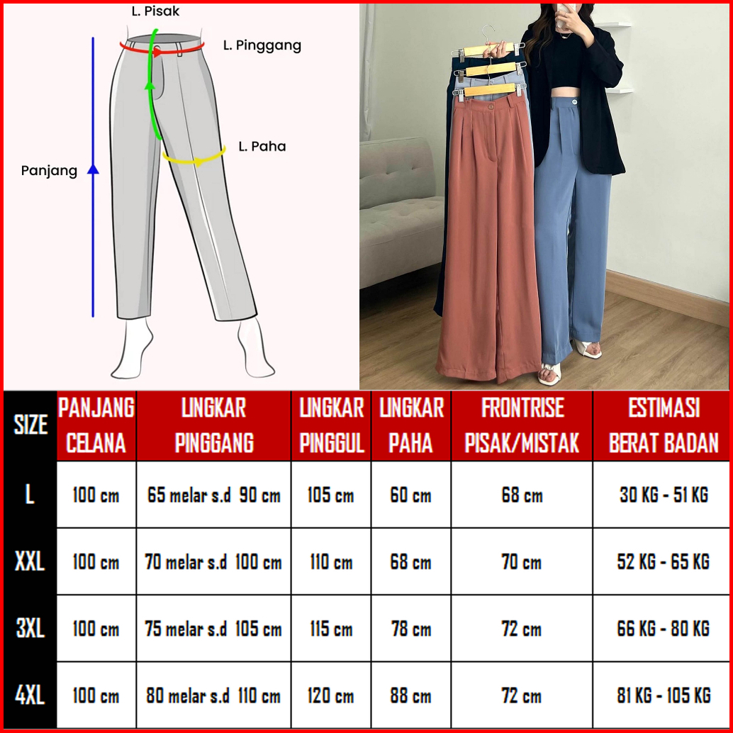 Meira Pants Loose Pants Trousers Wanita Versi Kain Tebal Anti Lecek - Celana Anti Kusut - Celana Kulot Wanita - Celana K