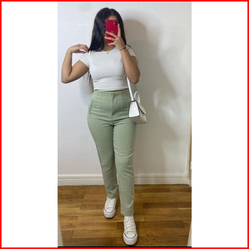 Celana Scuba Pensil Higwaist Saku Paspol Basic Slim Pants Premium Jumbo