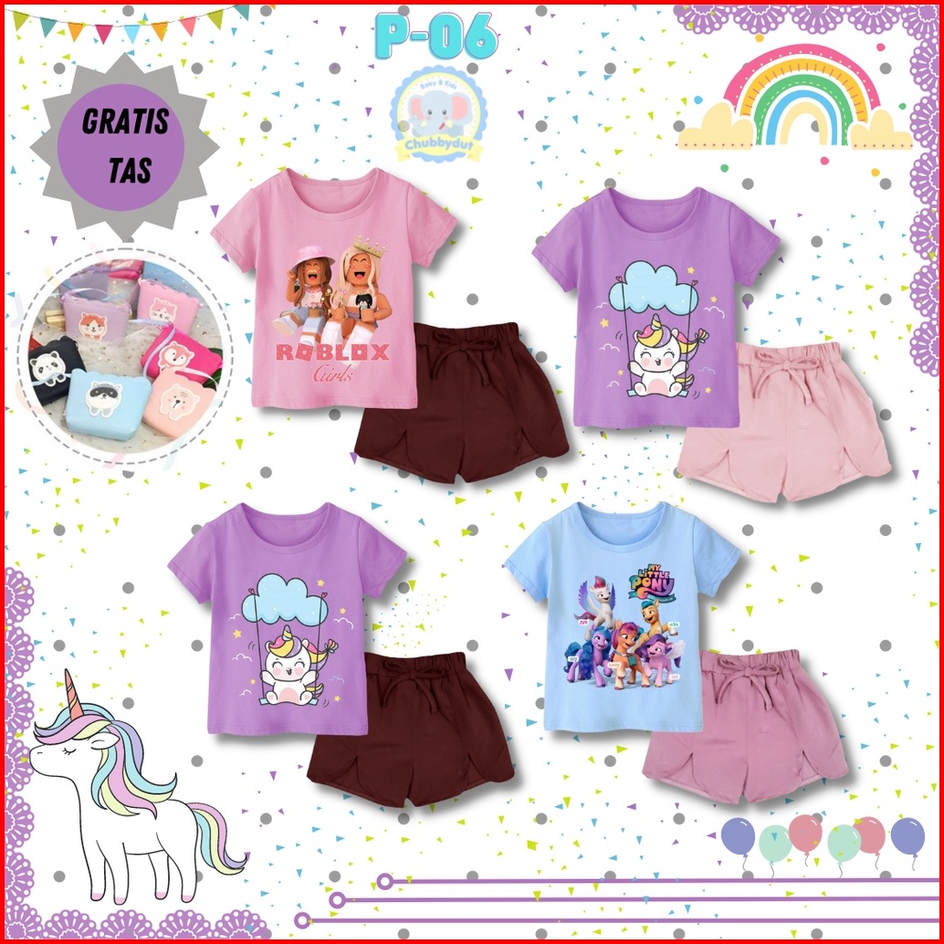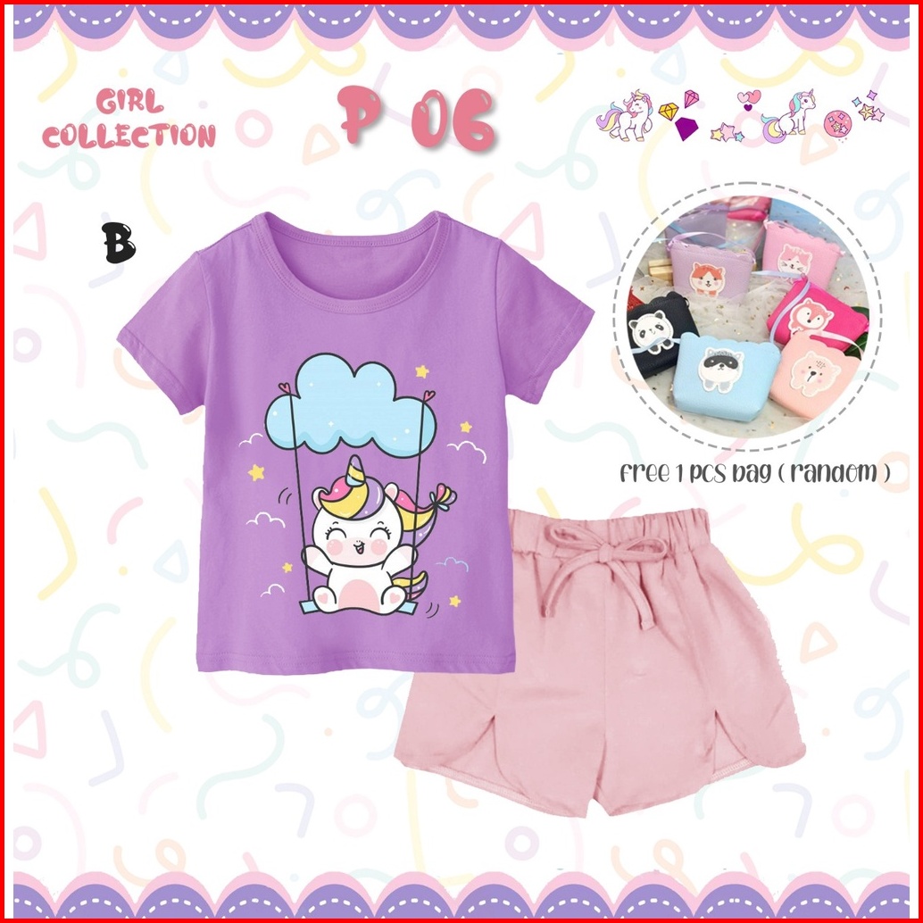 Cabydut Setelan Kaos Anak Perempuan Karakter Free Tas Mini Cantik