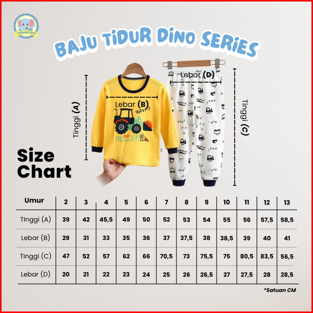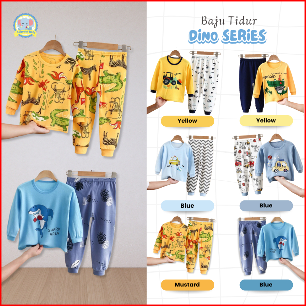 Cabydut Baju Tidur Anak Laki Laki Piyama Lengan Panjang Dino Series