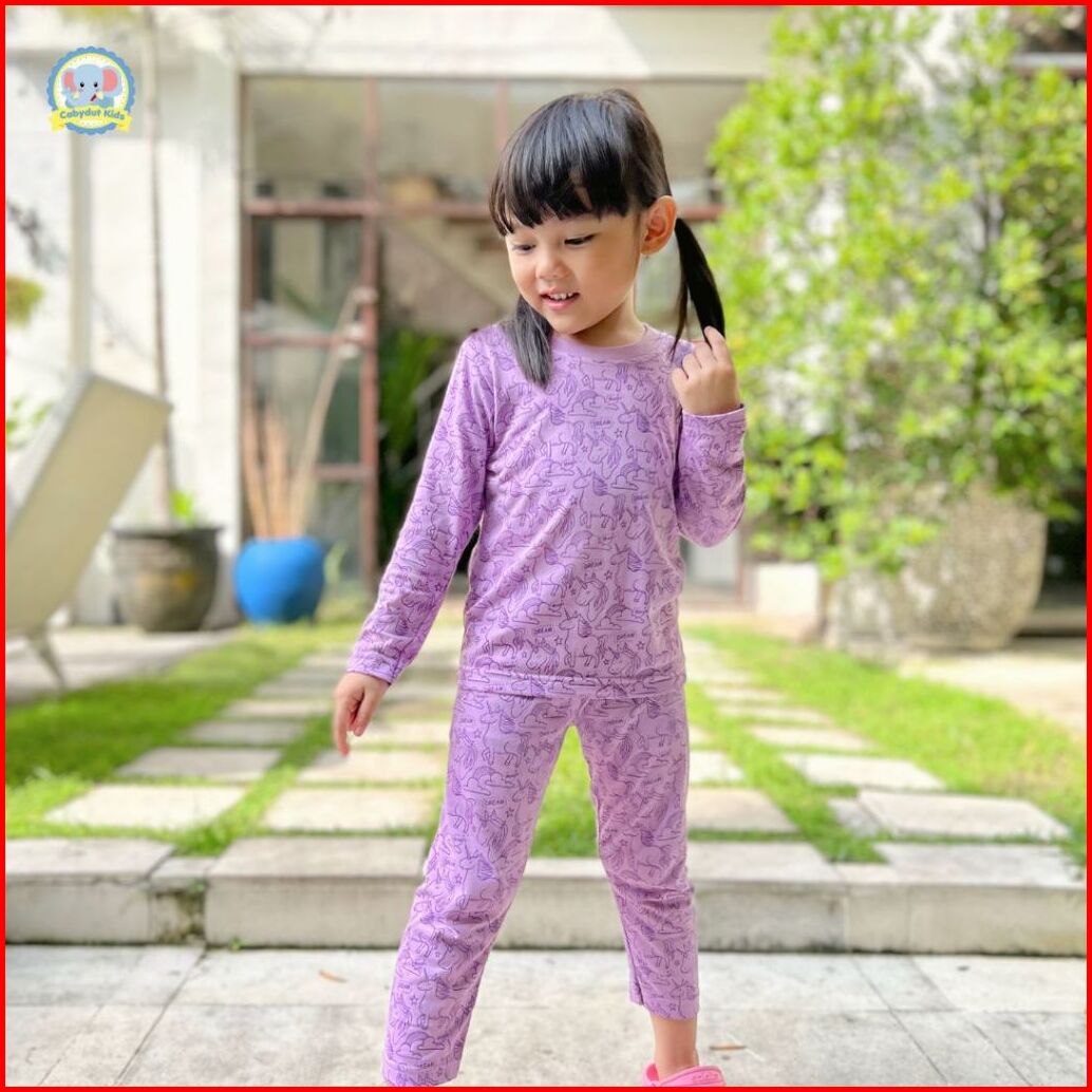 Cabydut Baju Tidur Anak Perempuan Piyama Lengan Panjang Cotton Bamboo Motif Unicorn