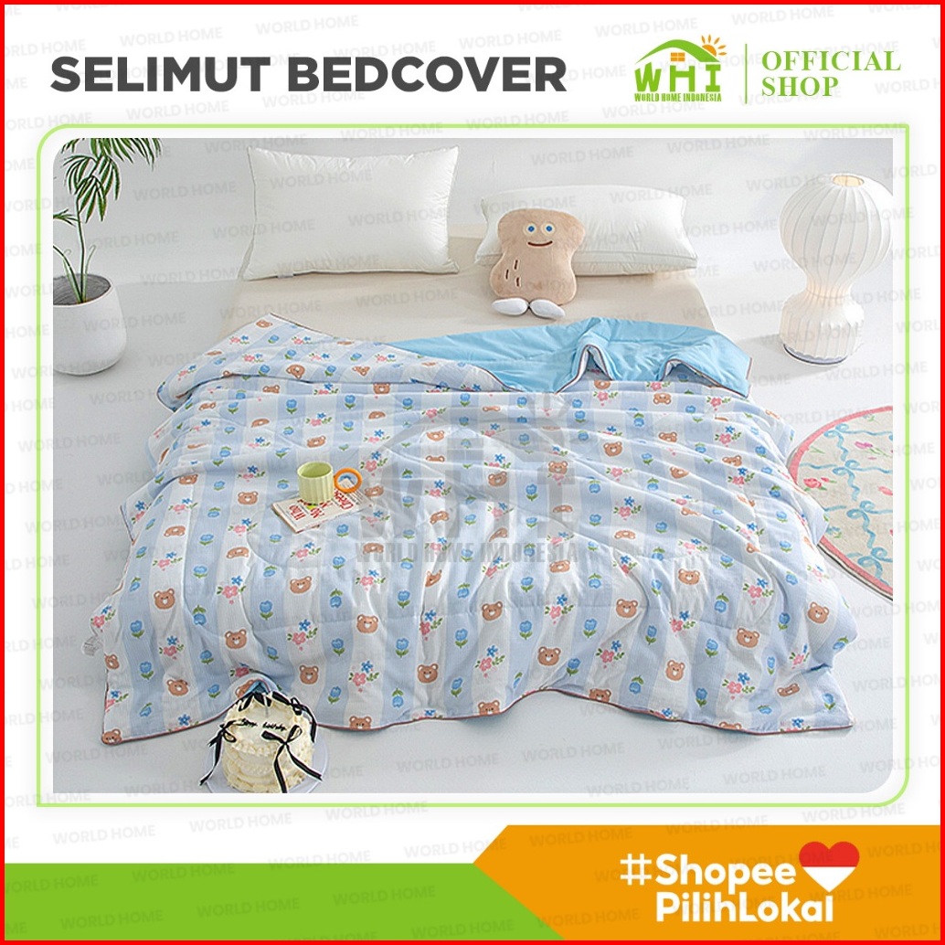 World Home Selimut Bedcover Only Katun Seersucker Bahan Halus Lembut Bedcover Motif 2 Variasi