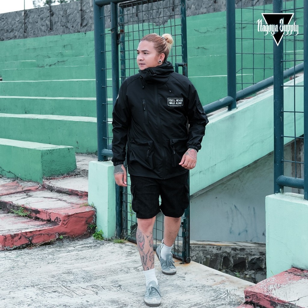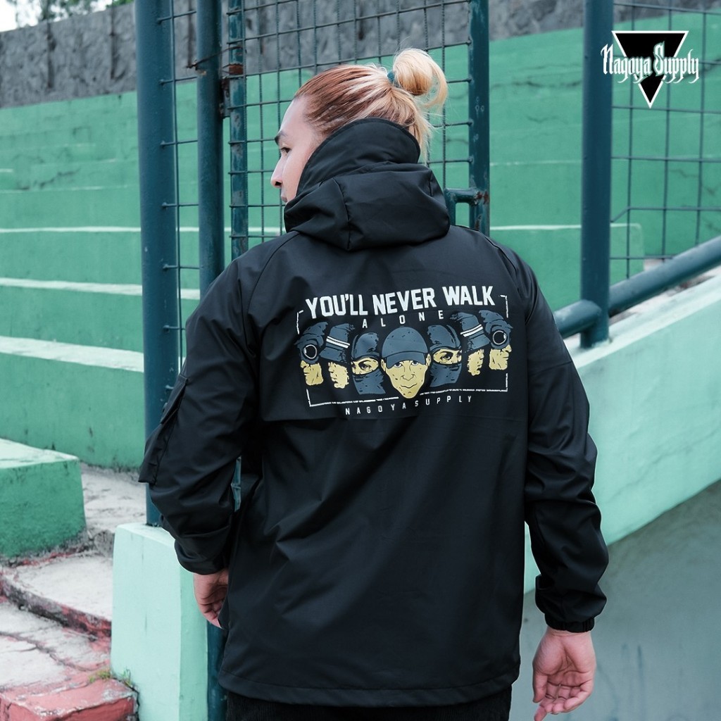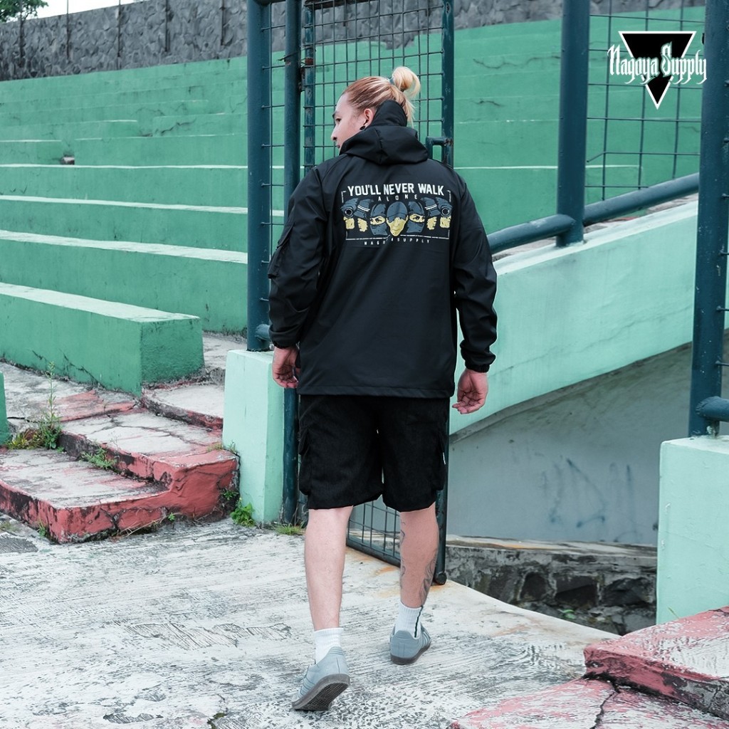 Jaket Parasut Pria Jaket Gorpcore Waterproof Holigan Ultras Alone Hitam Nagoya