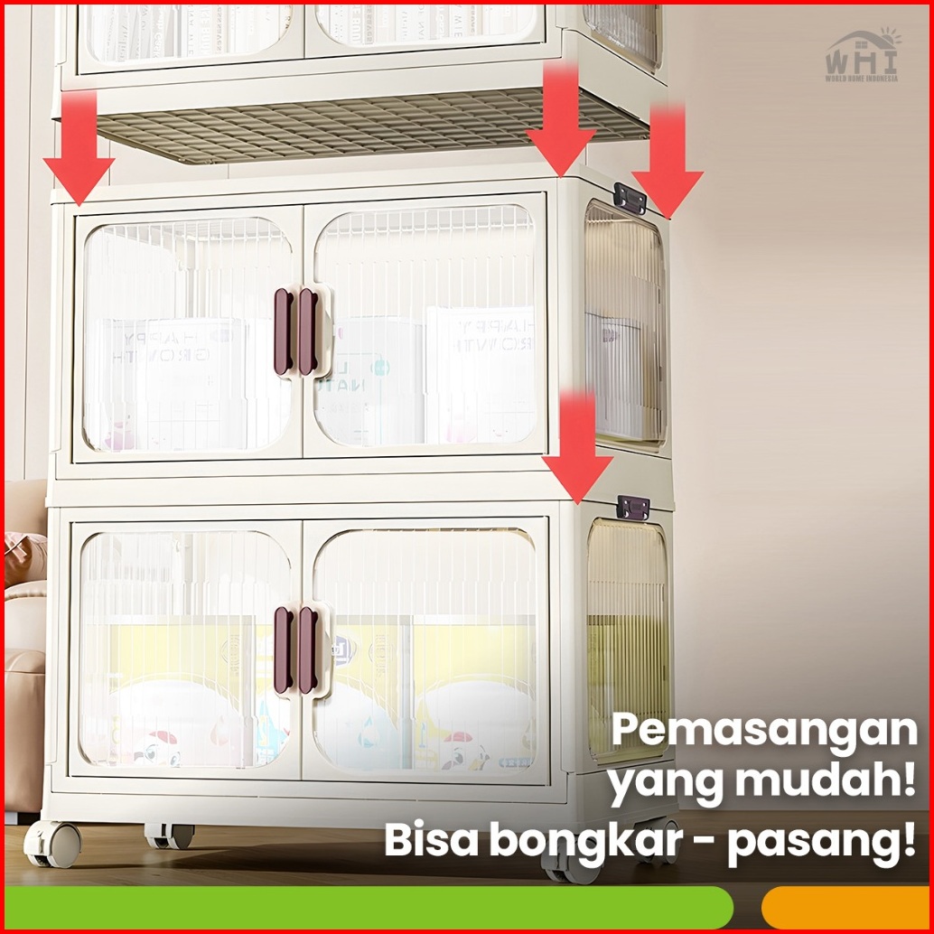 World Home Lemari Susun Penyimpanan Serbaguna Storage 2 3 Tingkat Portable Rak Plastik Lipat Susun