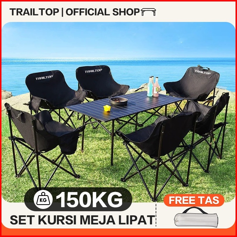 Trailtop Meja Kursi Lipat Outdoor 1 Set Meja Lipat Portable Kursi Lipat Lebar Dan Tebal Beban 150kg