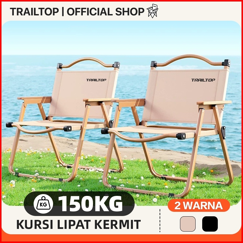 Trailtop Kursi Lipat Outdoor Dengan Gagang Kayu Kursi Pantai Lipat Untuk Camping Berbeban 150kg
