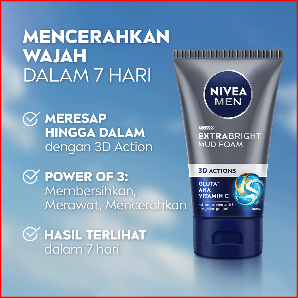 Nivea Men Extra Bright Mud Foam 100ml Twin Pack