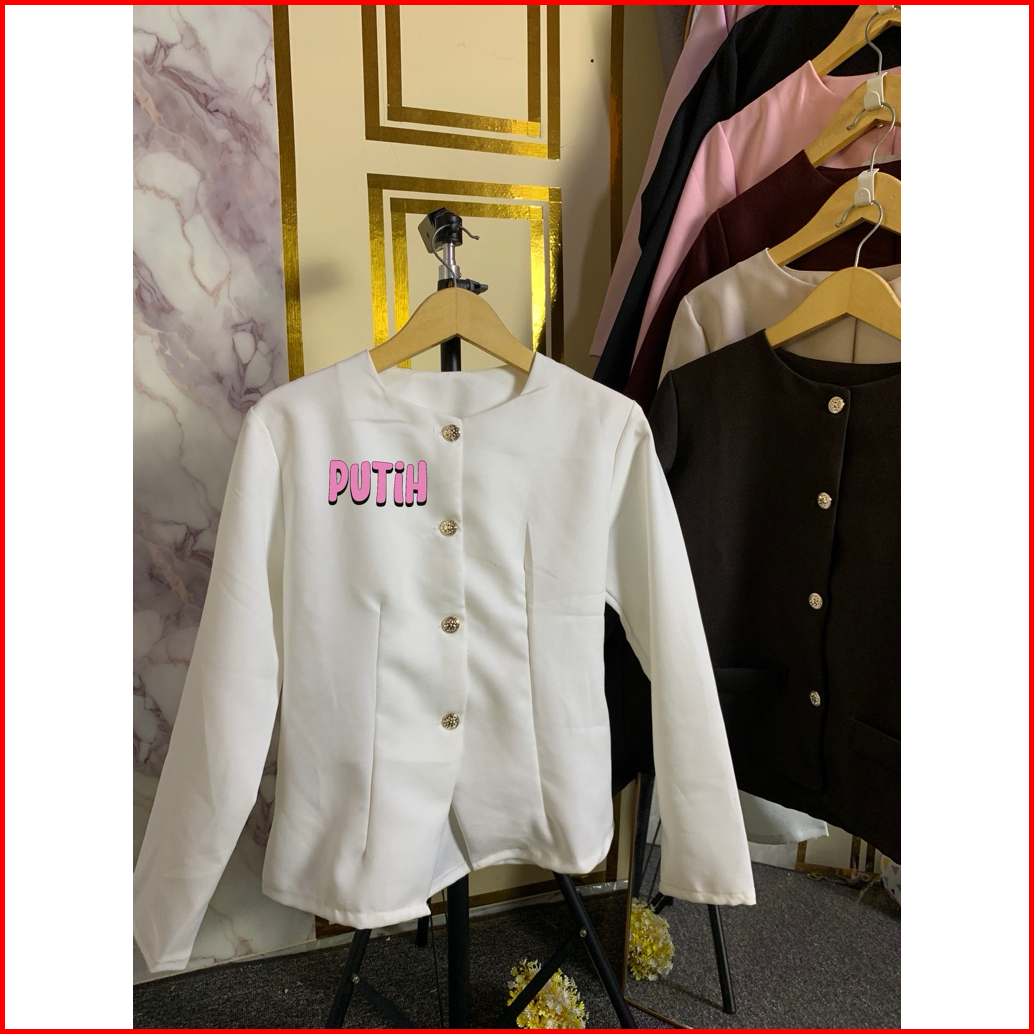 Exsklusif Rafa Dop - Ailiee Top Blazer Semiwoll Korean Style Full Kancing Atasan Lengan Panjang Hijab Friendly Blouse Ar
