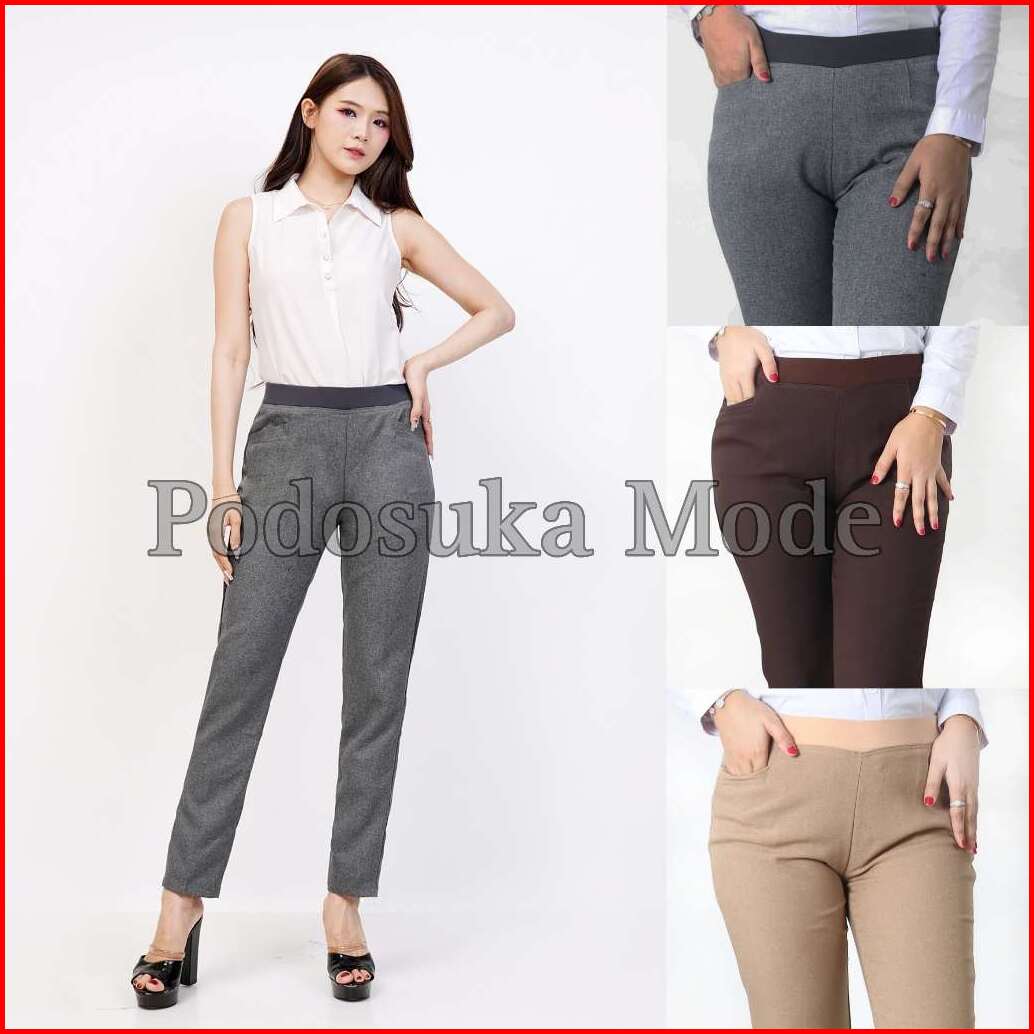 Celana Kerja Wanita Kantor Pinggang Full Karet Strech Premium