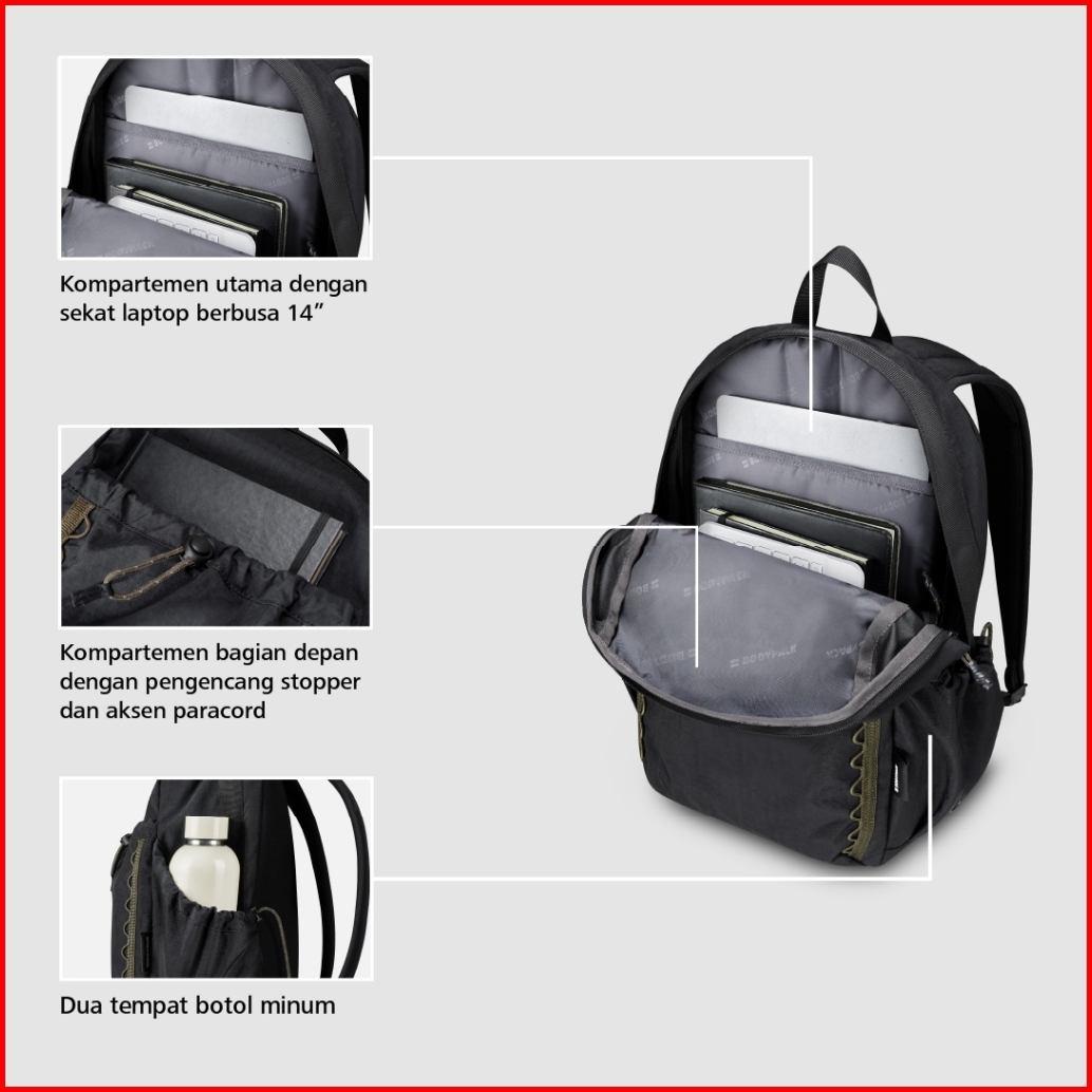 Bodypack Shilka Vision 1.0 Laptop Backpack 14 Inch Tas Ransel Kerja Kuliah Sekolah Ringan Multifungsi - Hitam