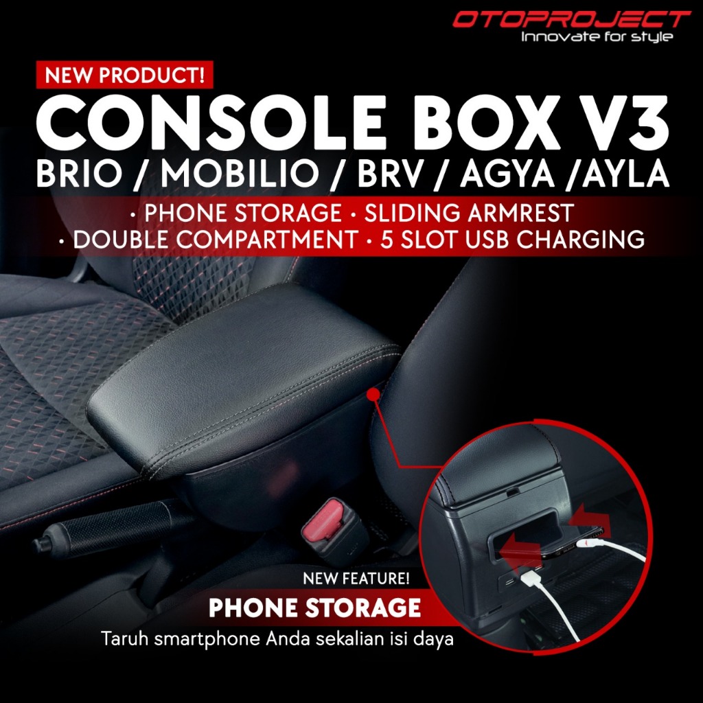 Otoproject - Console Box Brio / Agya / Mobilio V3 W/Usb Charger | Armrest Tangan Agya / Brio