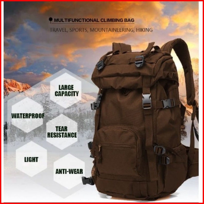 Tas Gunung Hiking 50 Liter Nilon Ransel Carier Pria Wanita