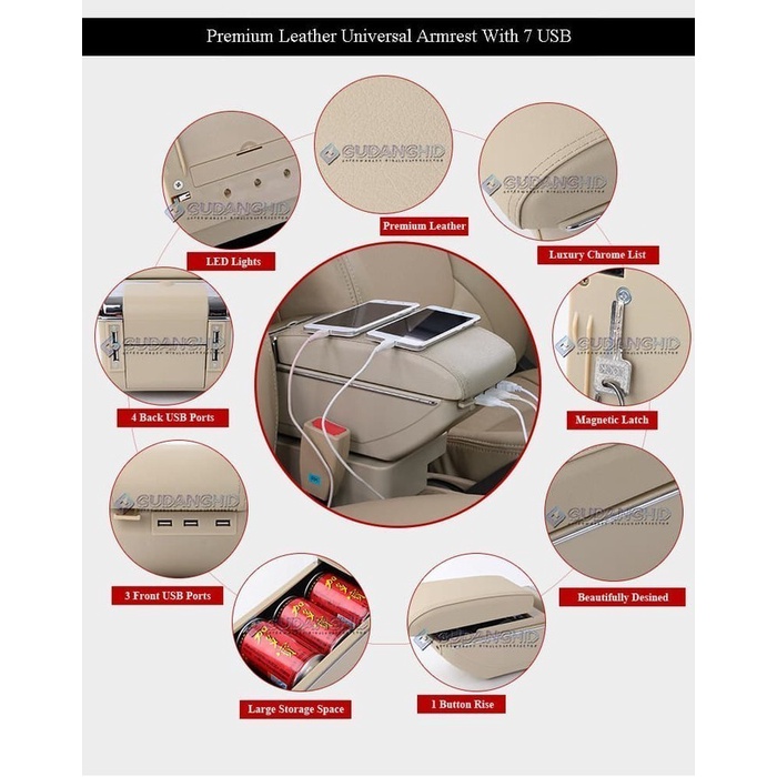 Armrest Mobil Khusus All New Suzuki Ertiga XL7 7 Port USB Charger + LED