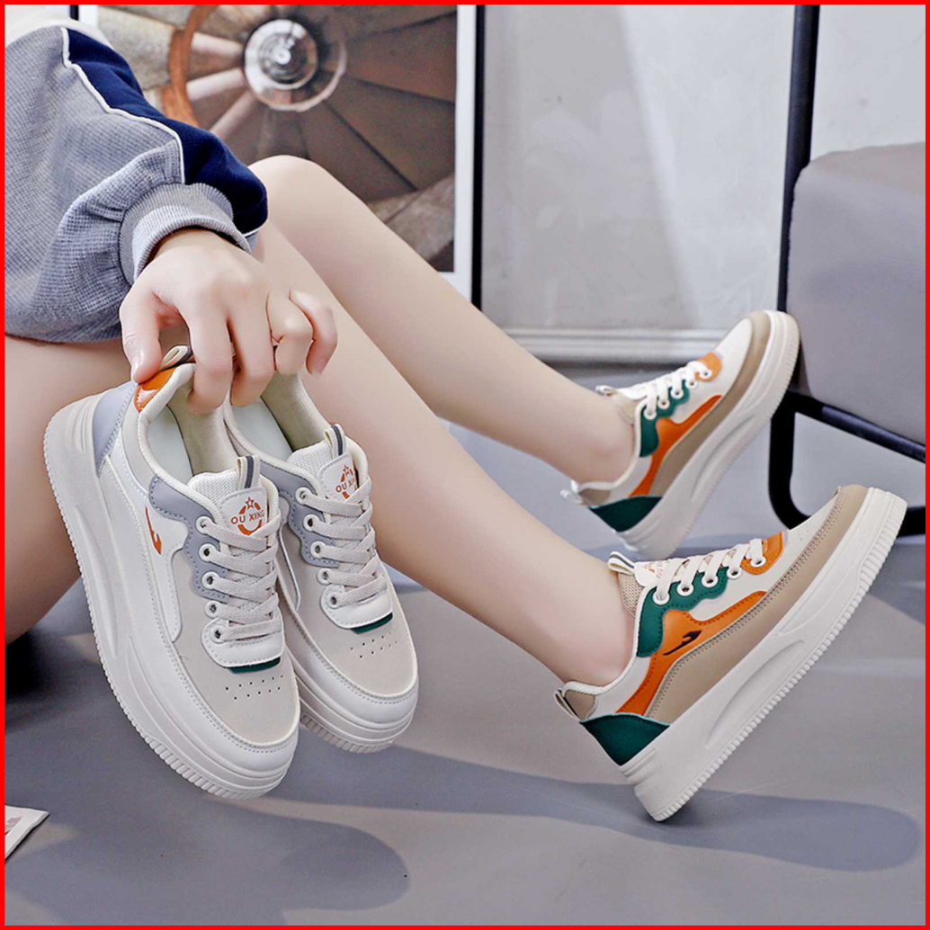 Sepatu Sneakers Sport Shoes White Casual Bertali Kekinian Wanita Sintetis Pu Woman Trendy Sekolah Kampus