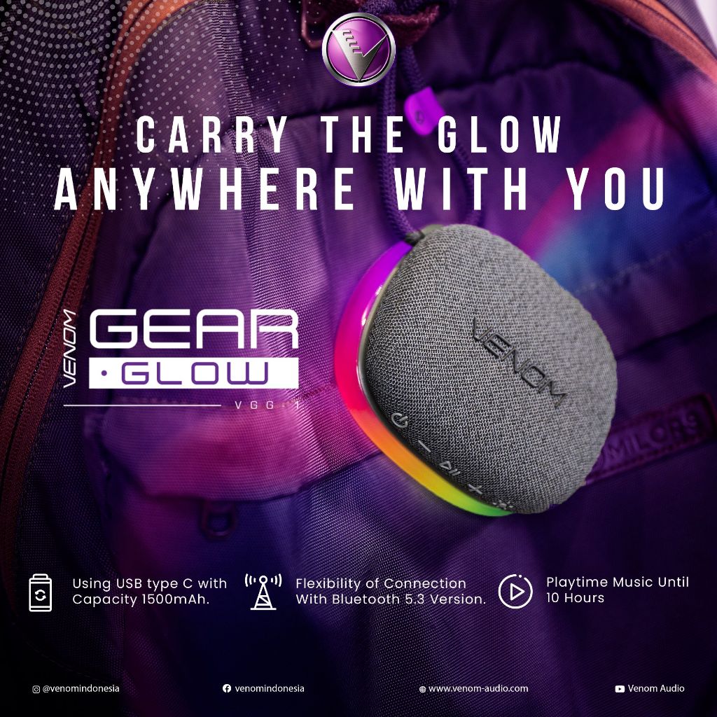 [Star] Venom Gear Glow VGG Speaker Bluetooth Portable Bass with Ambient Lights Terbaru TerLaris 2025