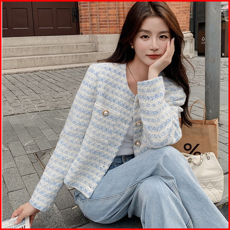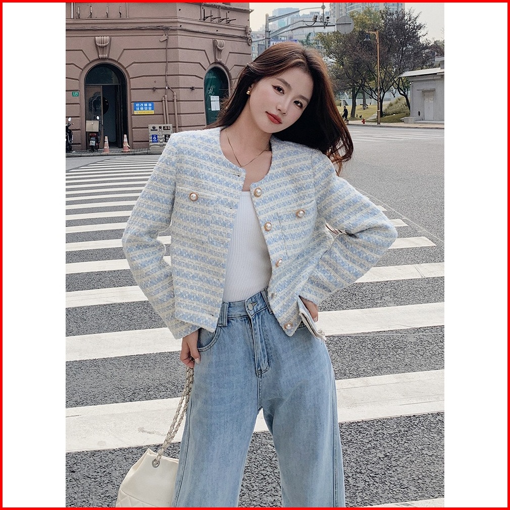 Blazer Biru New Round Neck Blue Soft Style Romantic For Women M601