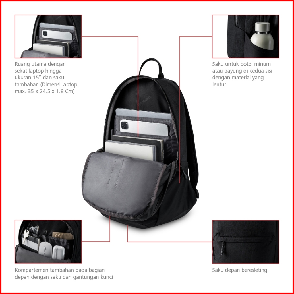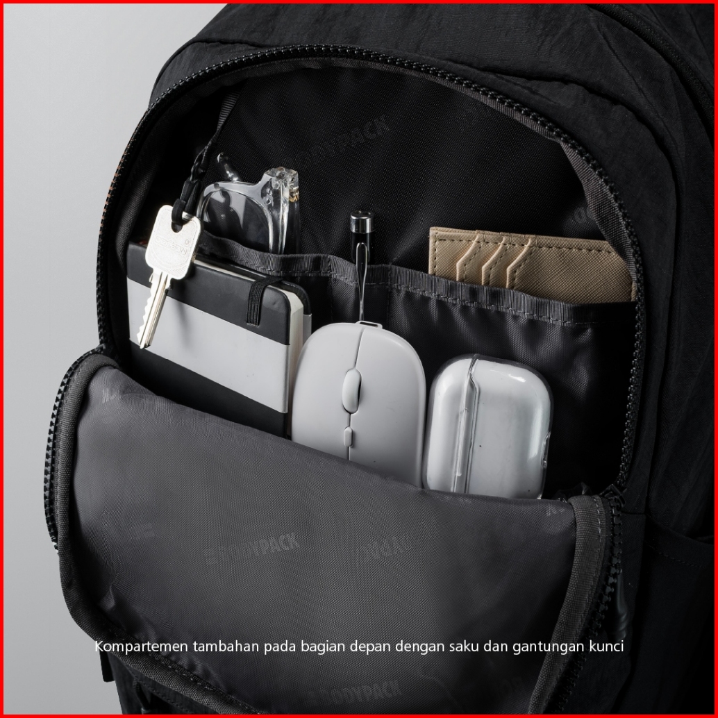 Bodypack Barrow Laptop Backpack 15 Inch Tas Ransel Kerja Kuliah Sekolah Ringan Multifungsi - Hitam