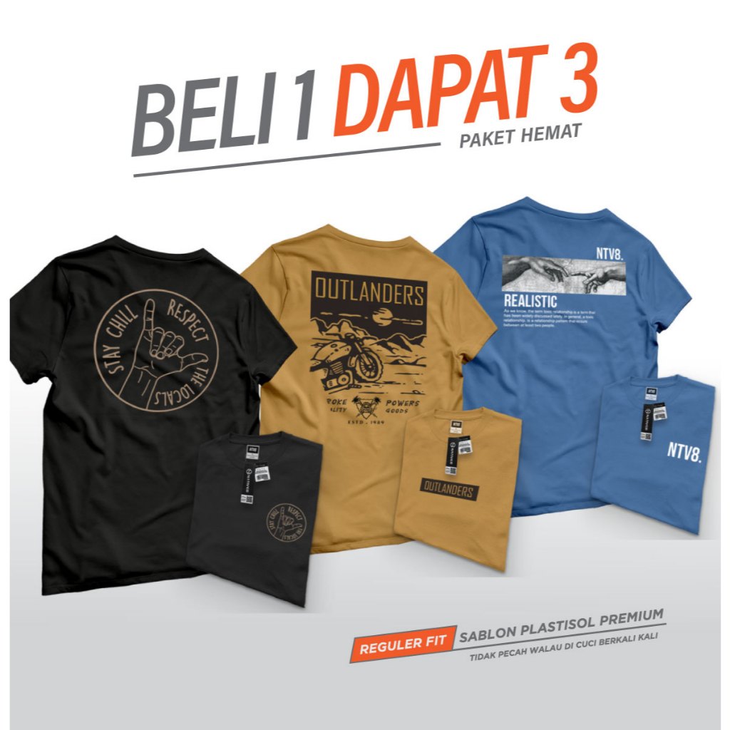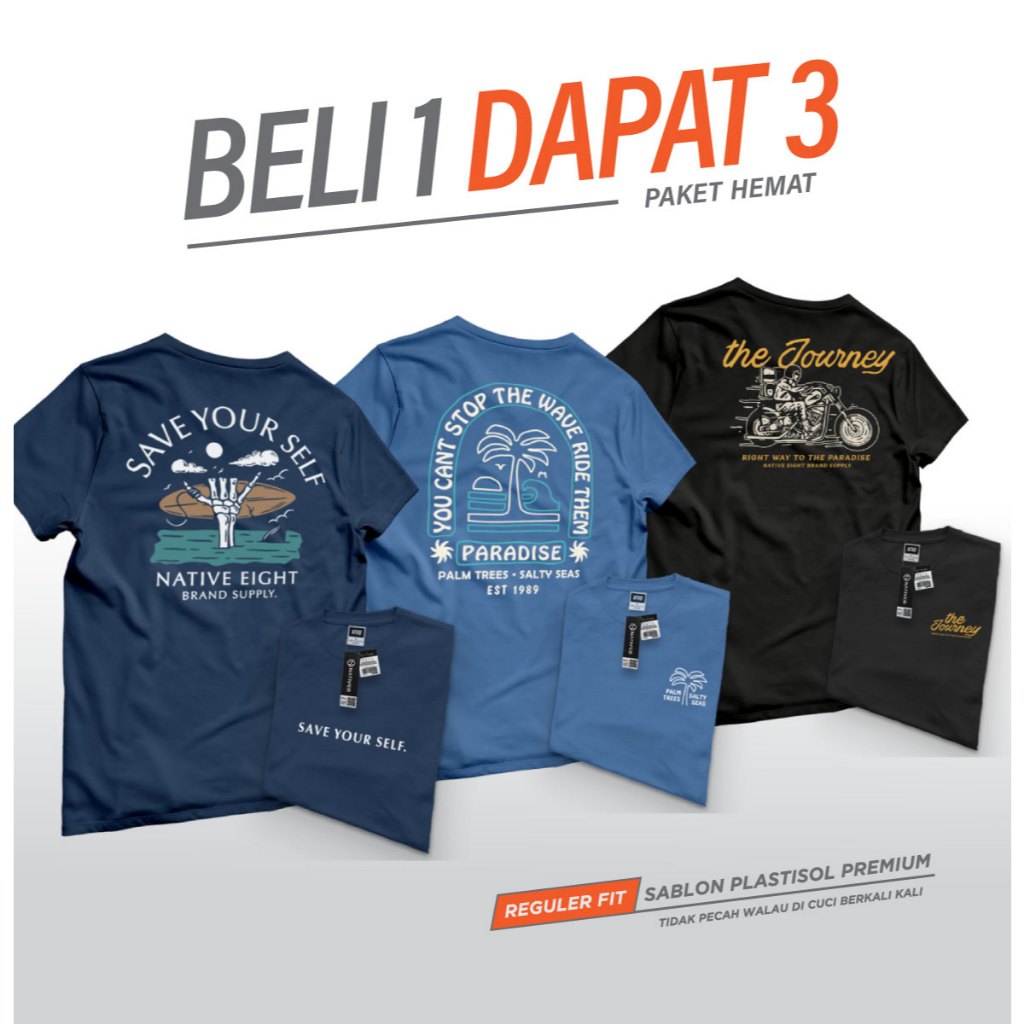 PAKET 3 BAJU KAOS PRIA NATIVE8 BAHAN KATUN KOMBET 30S