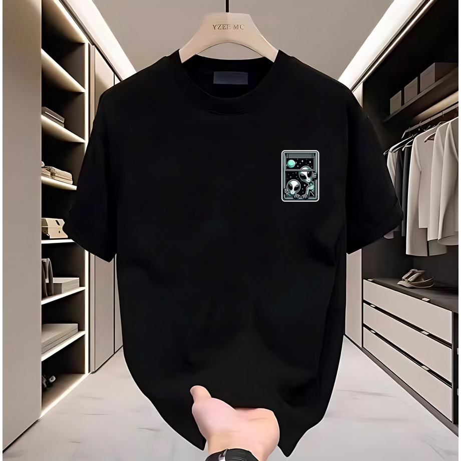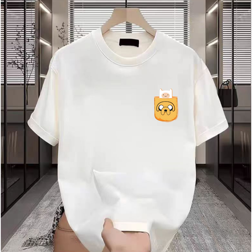 2025 musim panas baru katun Yzei Kaos Hitam Laki-laki Karakter Kucing baju kaos pria distro