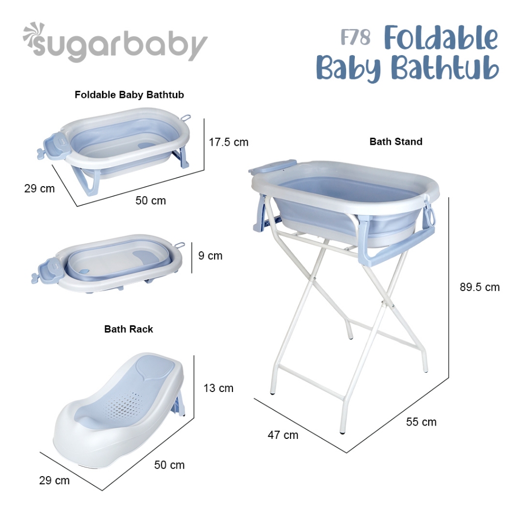 Sugar baby Foldable & standing Baby Bathtub with Digital Thermometer F78-F82-F88/ Sugar Baby Bathtub/Bak Mandi lipat Anak/Bak Mandi Bayi/Perlengkapan Mandi Anak