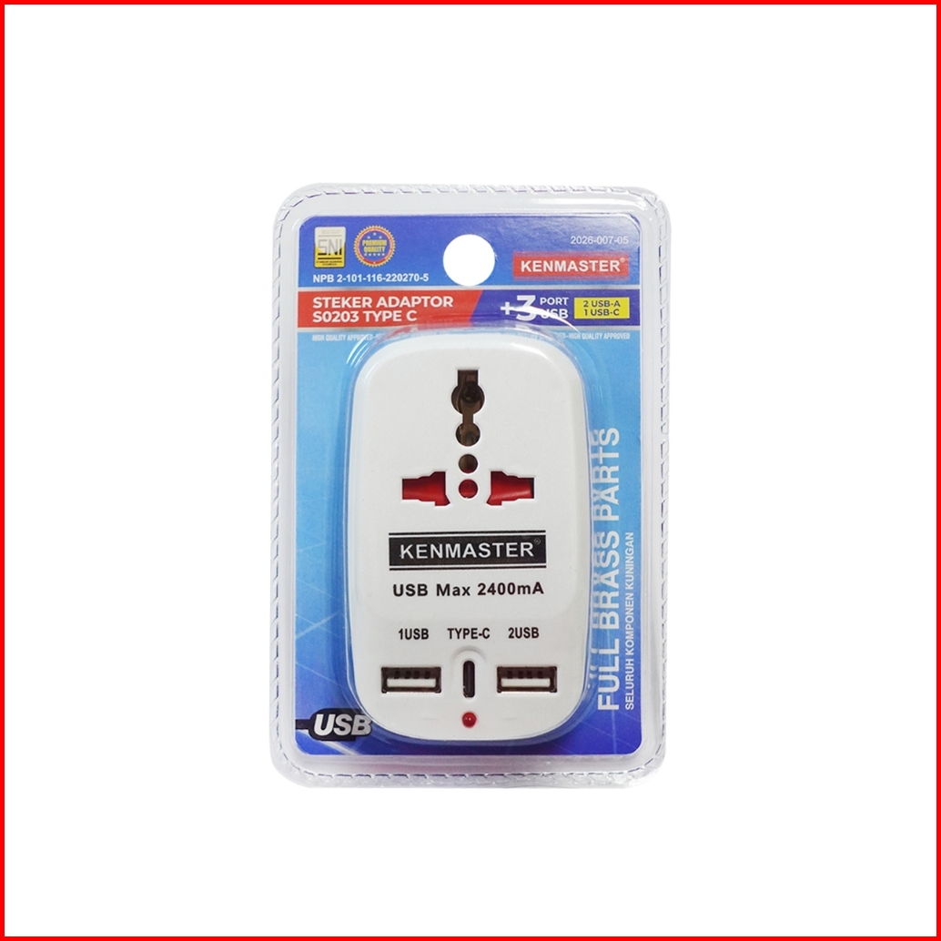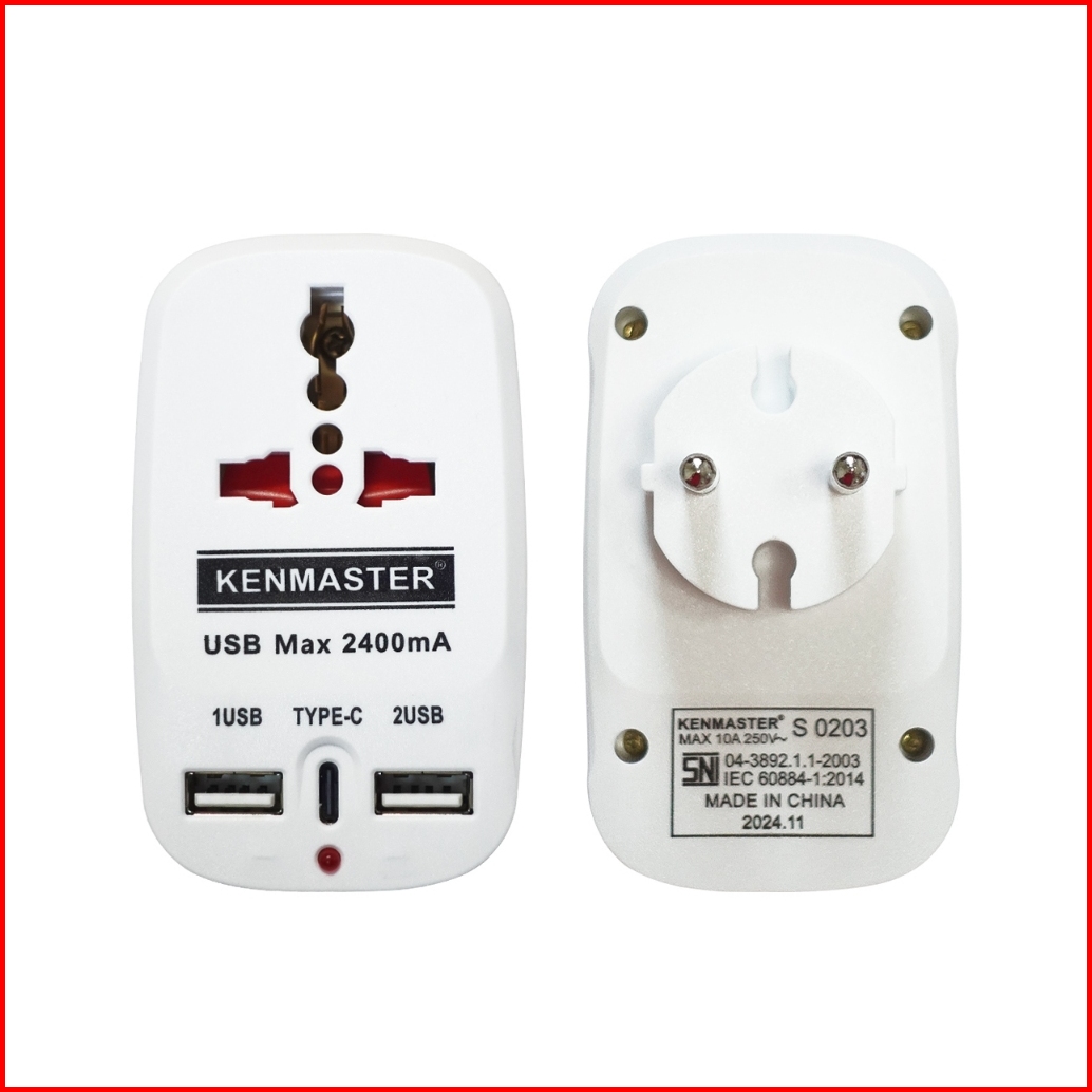 Kenmaster Type C Usb Steker - 2 Lubang 3 Usb Colokan Listrik Colokan Saklar - Stek106
