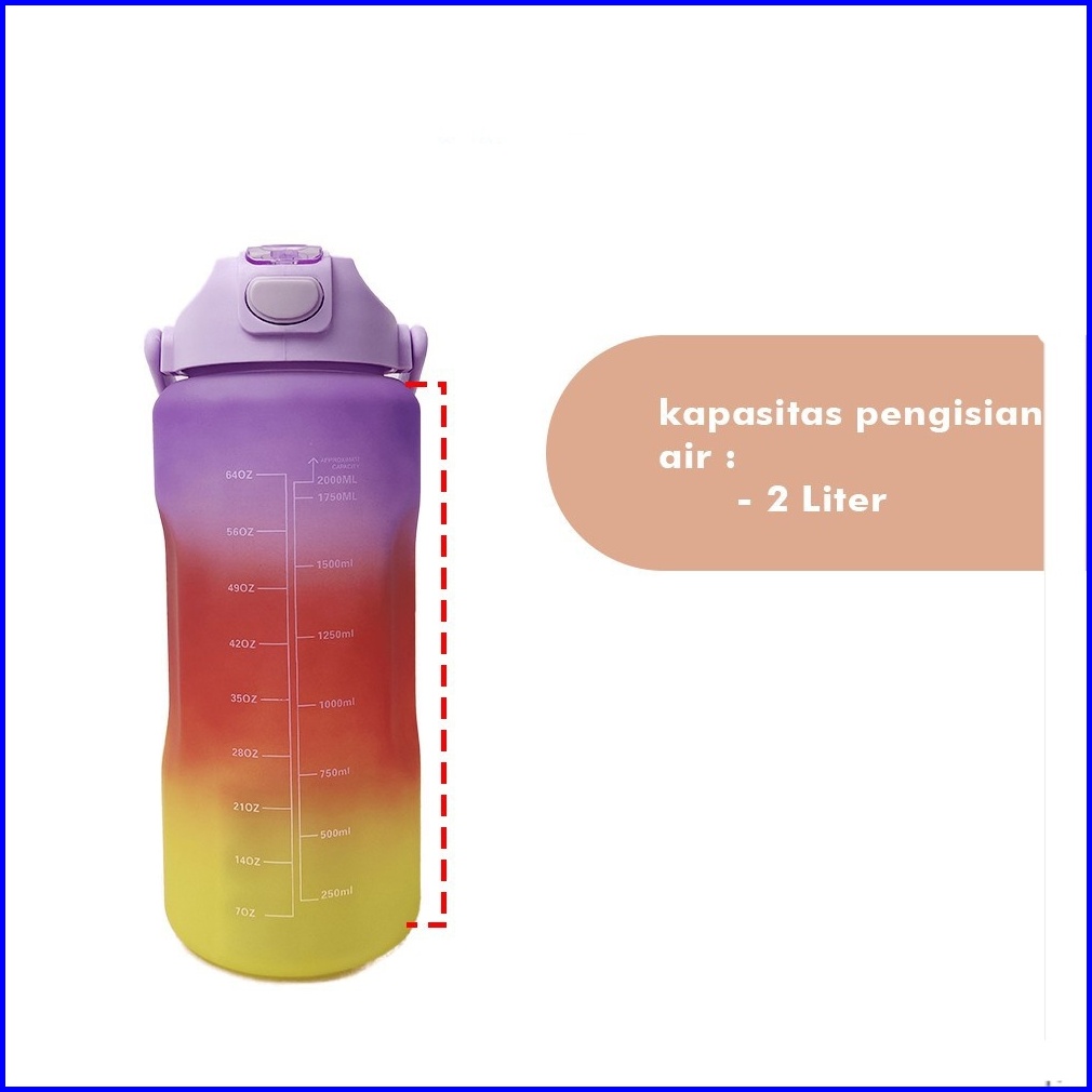 Miisoo Botol Minum 2 Liter Botol Gradasi Botol Viral Tumbler Gradasi Warna Botol Motivasi