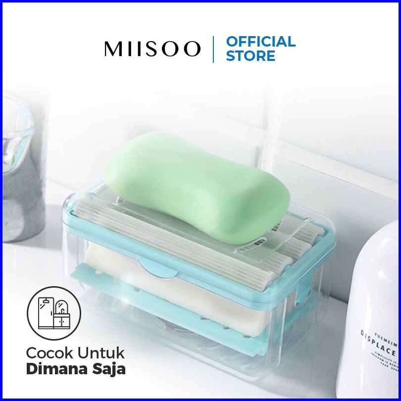 Miisoo Kotak Sabun Untuk Kamar Mandi 2in1 Kotak Dispenser Sabun Cair Spons Dengan Sikat Pembersih