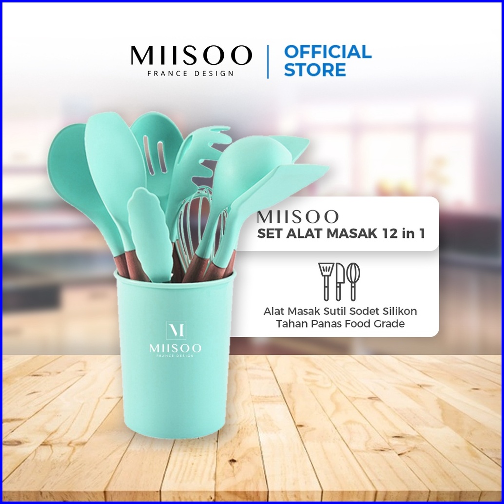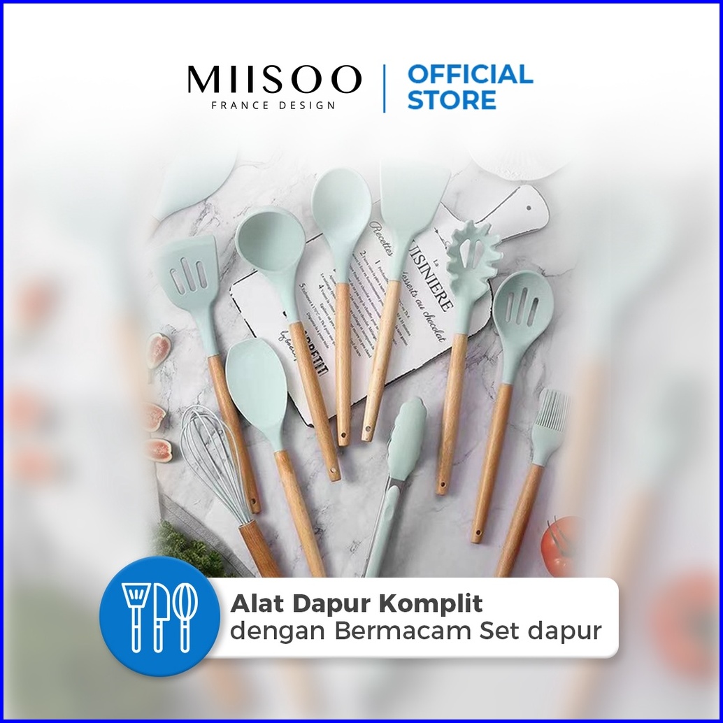 Miisoo 12 In 1 Set Alat Masak Sutil Sodet Silicone Spatula Silikon Tahan Panas Food Grade
