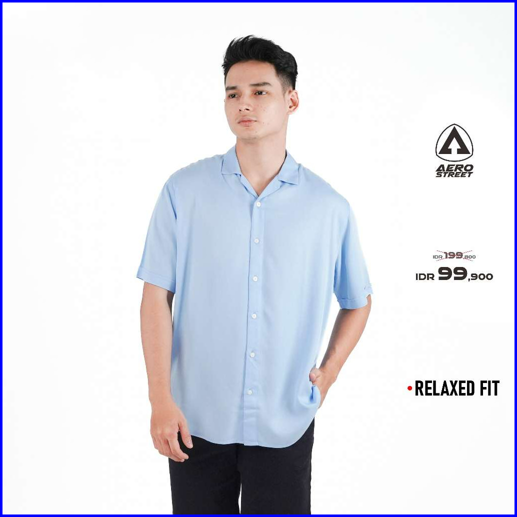Aerostreet Kemeja Rayon Marva Sky Blue Hawai Polos Cerah Pria Wanita Qabaa