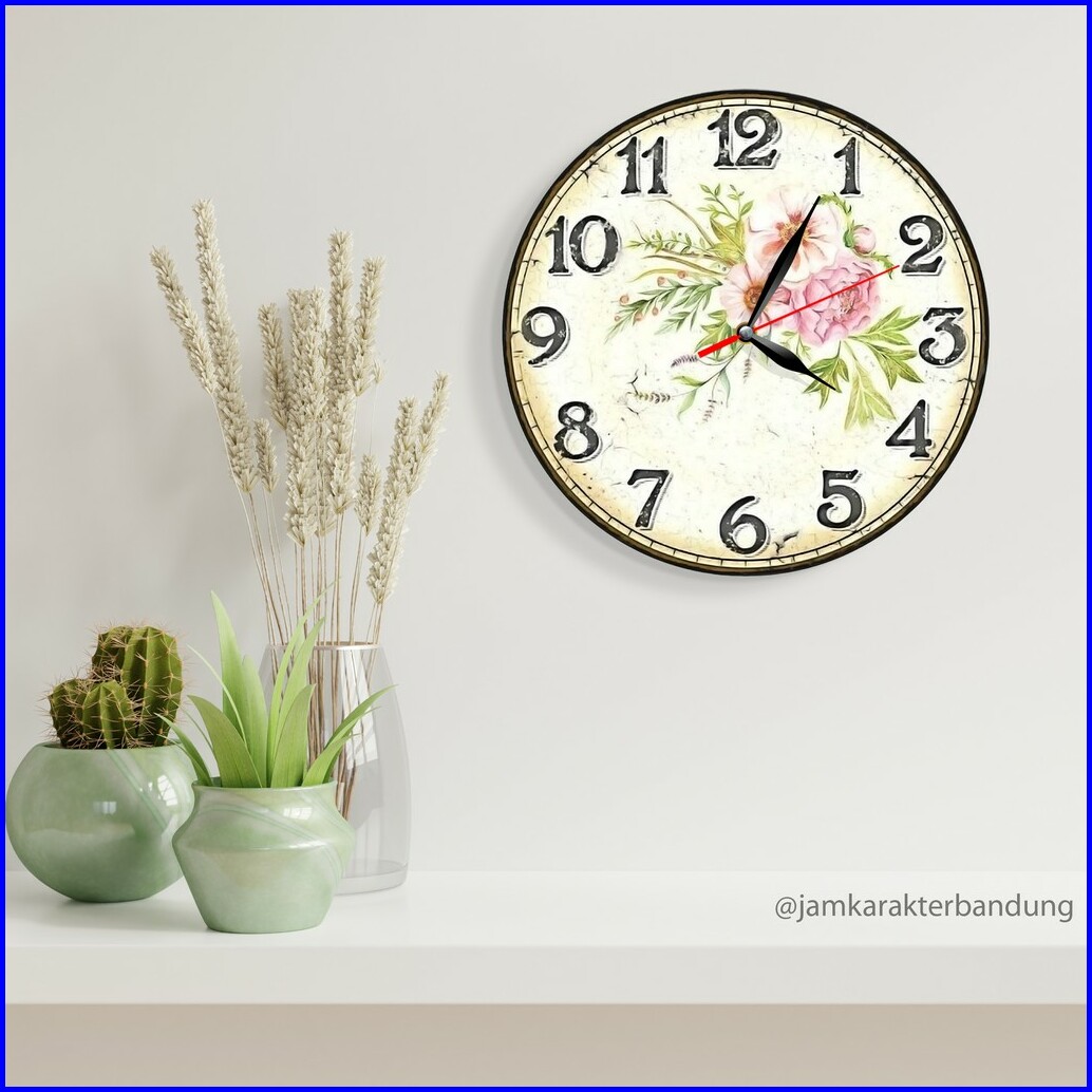Jam Karakter Bandung - 042 Jam Dinding Cantik Shabby Chic Motif Bunga Hiasan Dinding