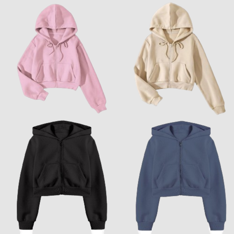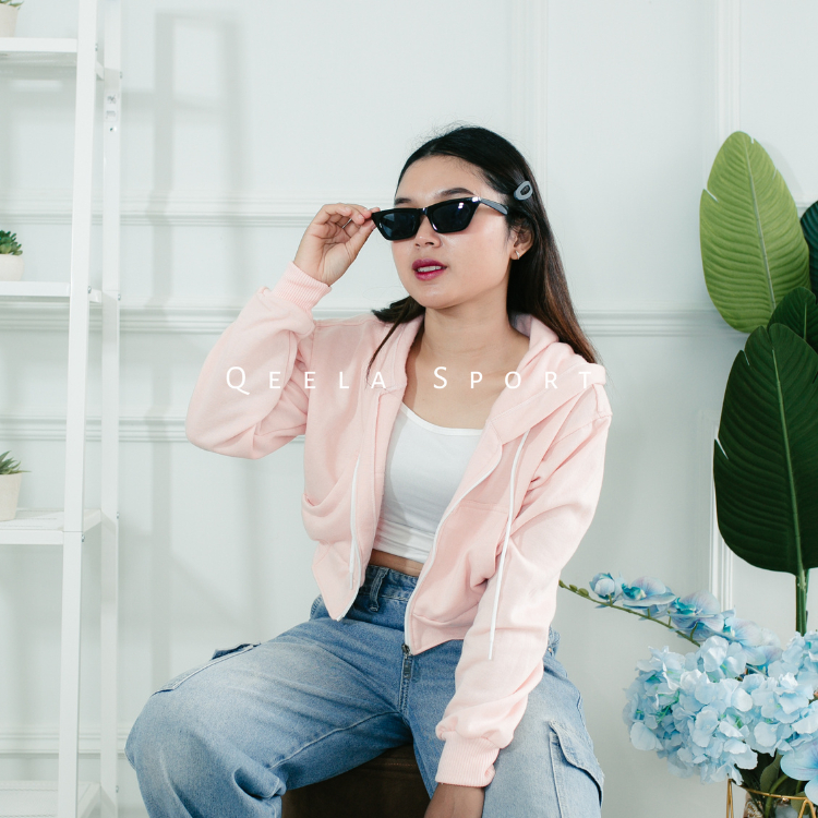 HOODIE JAKET WANITA CROP HOODIE JAKET WANITA CROP [QeelaOfficial] HOODIE ZIPPER CROP JKET SWEATER CREAWNECK HOODIE WANIT