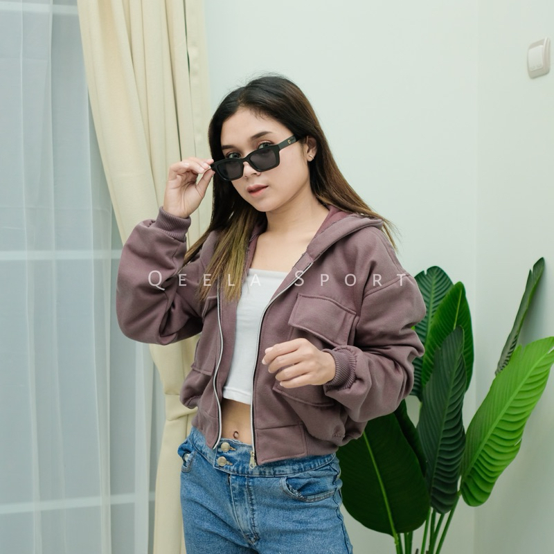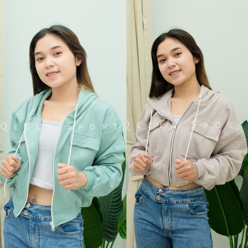 HOODIE JAKET WANITA CROP HOODIE JAKET WANITA CROP QeelaOfficial - Crop Hoodie Zipper Two Pocket Cargo Jket Croope Reslet