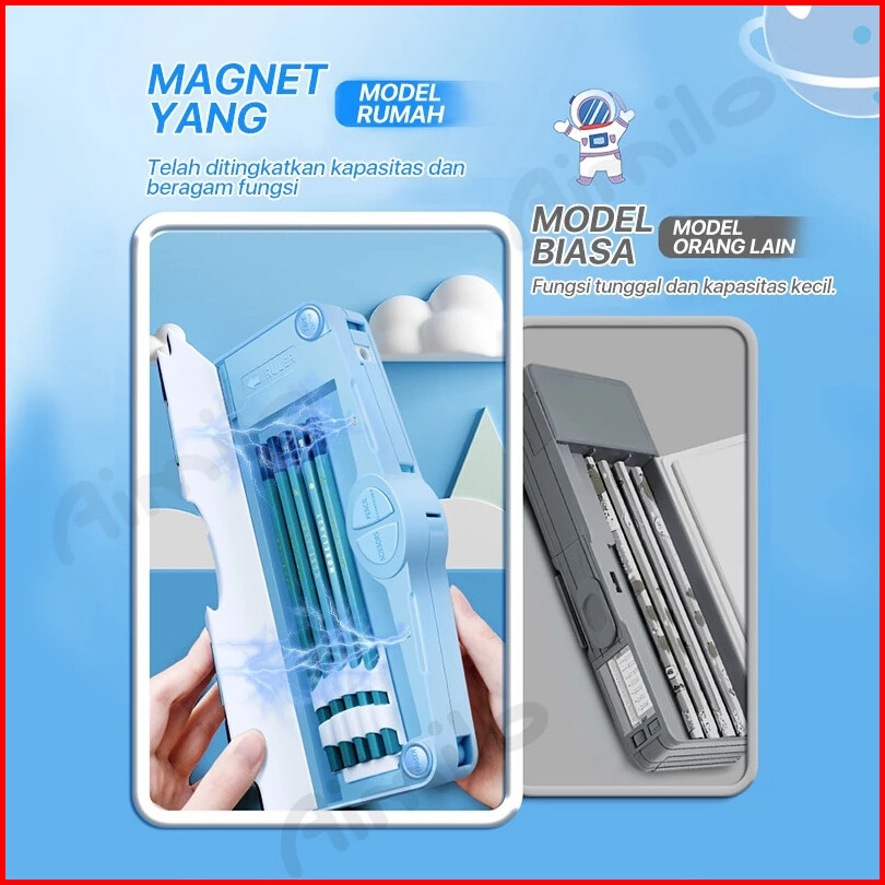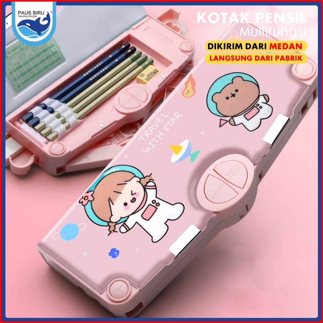 Paus Biru - Kotak Pensil Tempat Pensil Bahan Plastik Multifungsi Untuk Multifungsi Kotak Penyimpanan Alat Tulis