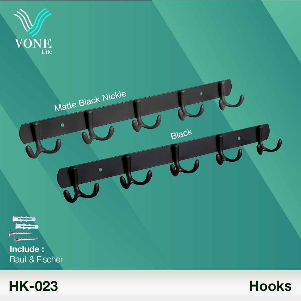 [Mall] VONE Gantungan Baju Handuk Dinding 5 Kait Hitam Abu Hook Kuat Anti Karat Kamar Mandi Minimalis VONE LITE